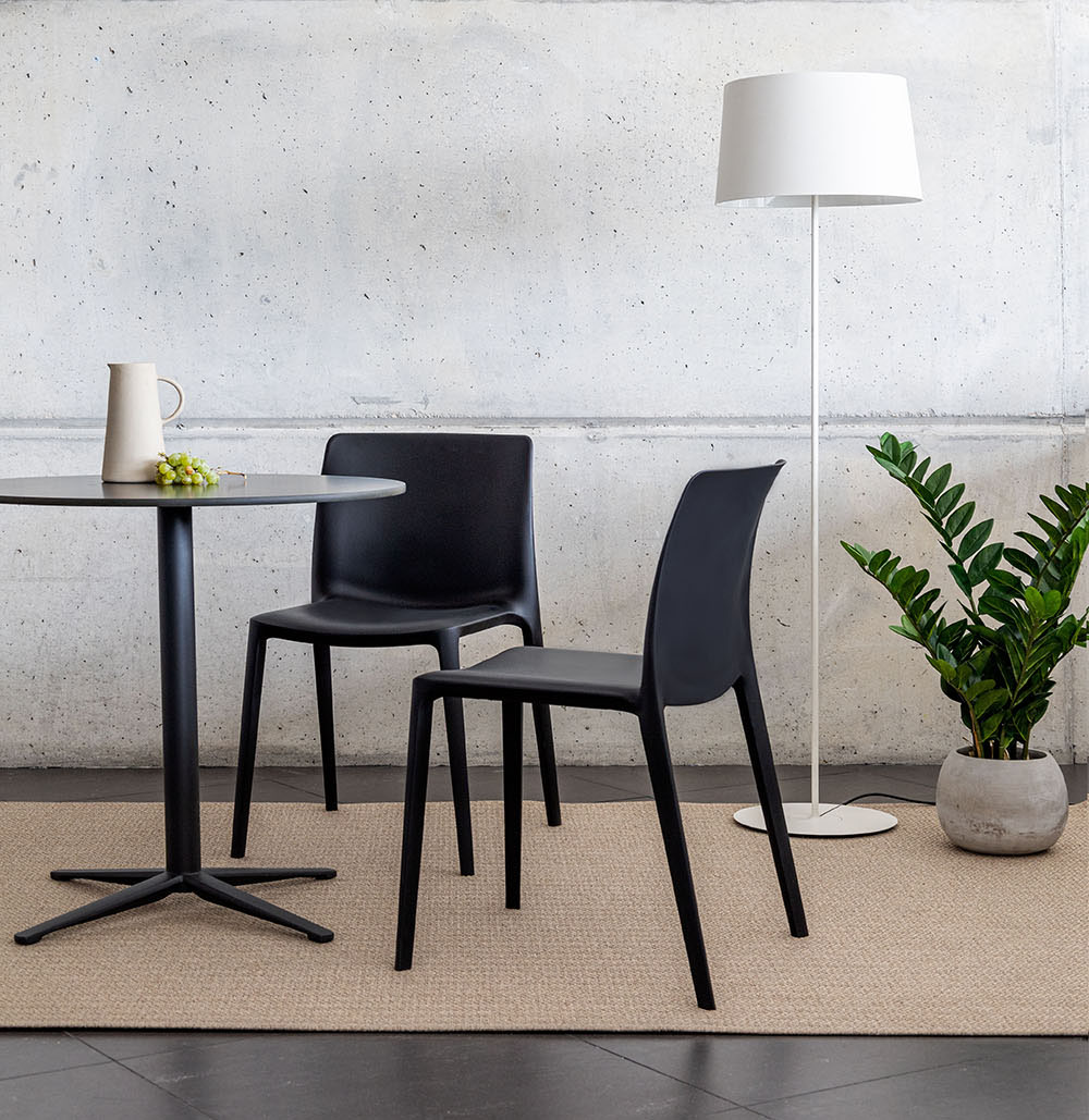 A slender and lightweight piece, 70% of the material used is recycled and certified plastic. The remaining 30% of the material is fibreglass, which is also recycled. Actiu has created this chair using an innovative gas injection process, which reinforces its resistance and provides a delicate finish that is soft to the touch.