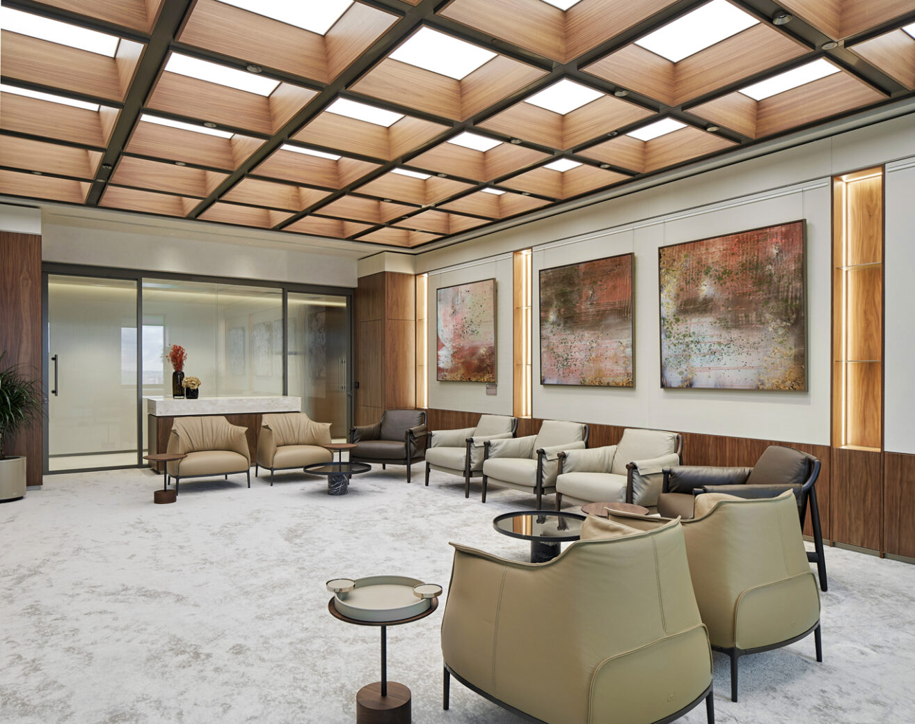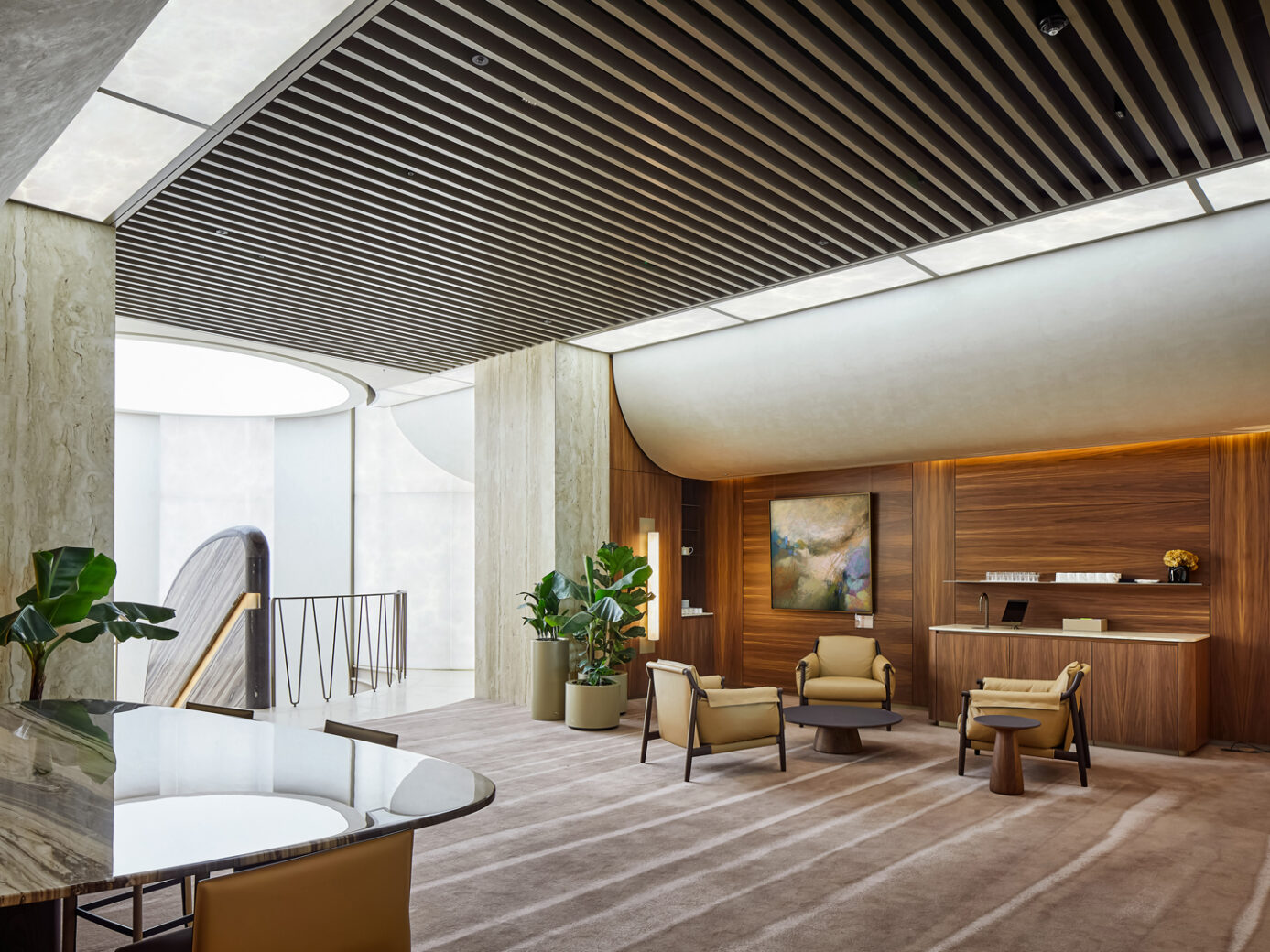 AECOM ID+S delivered a timeless executive headquarter design for one of the world’s premier commercial clients, set within an iconic London landmark. Spread across two levels and connected by a feature staircase, the executive spatial experience is inspired by the firms aspirational and progressive values. Featuring state of the art boardrooms, meeting rooms, dining rooms, offices, and lounge settings, AECOM ID+S provided the firms executive board and distinguished guests with a variety of transitional settings.