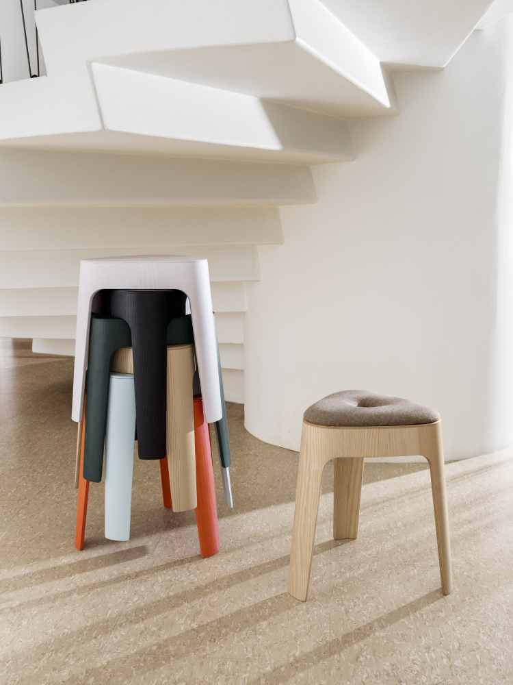 A simple, quiet yet robust stool, Ooty was designed in London by SmithMatthias and is the result of Allermuir’s first collaboration with the design duo. The simple, quiet yet robust stool is lightweight, stackable and designed to fit into a wide array of environments. The stool is made entirely from plywood allowing the material to take centre stage.