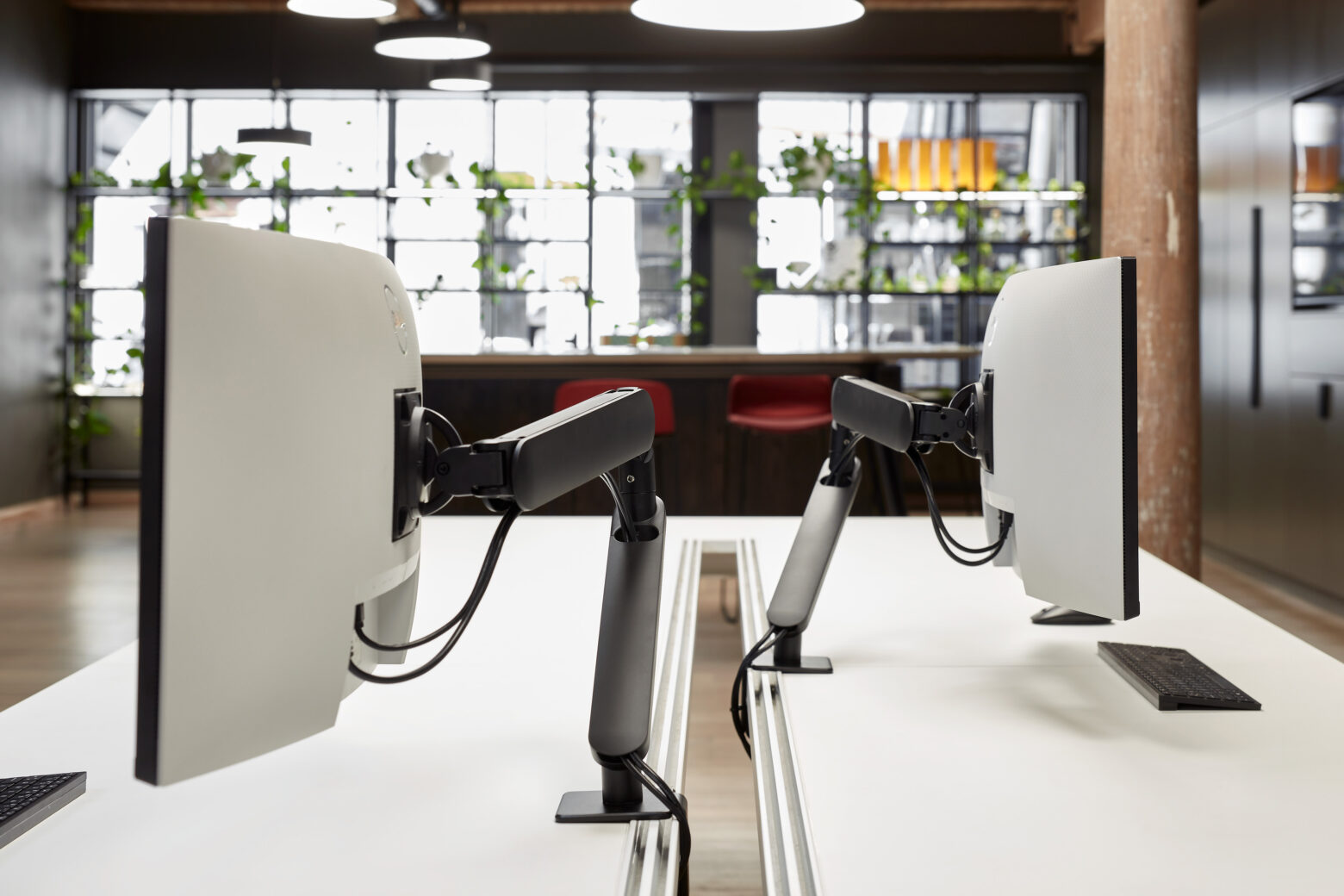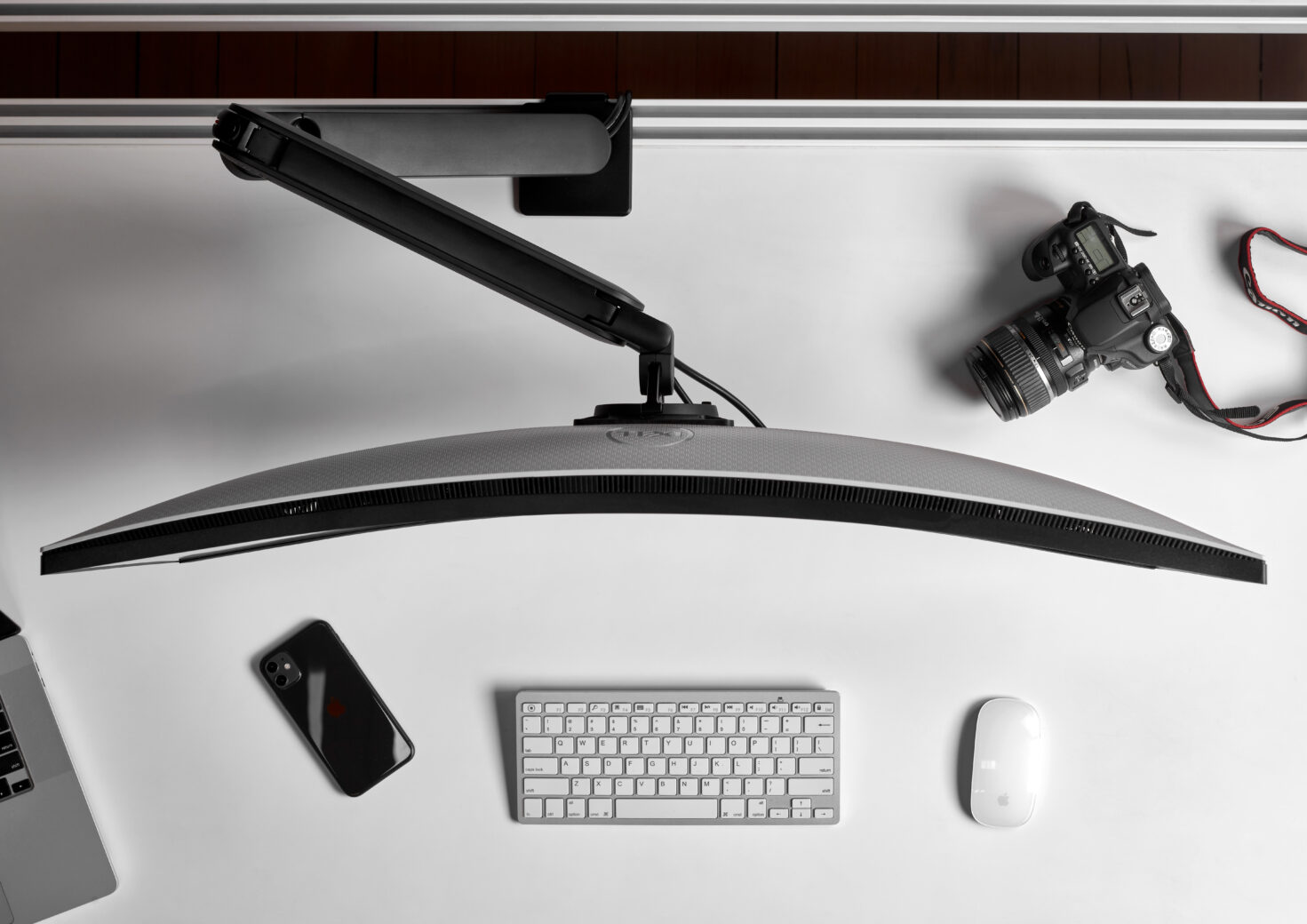 Ora is a monitor arm developed with market-leading features to support new ultrawide curved monitors in commercial offices. Behind Ora’s sleek, minimal aesthetic is a new counterbalance spring mechanism, which allows for effortless height adjustment with minimal parts. This mechanism is encased in a unique diecast unibody chassis engineered to provide exceptional torsional strength to withstand the significant twisting forces applied by deep, curved, and wide displays with minimal material use.