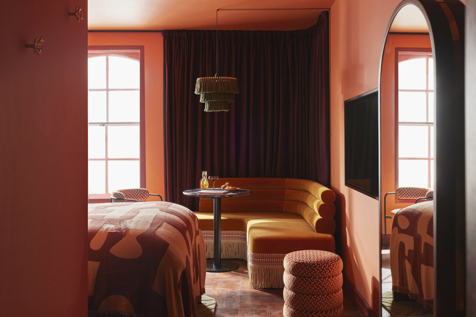Interior design studios Atelier Ochre and House of Dru have collaborated to design the vibrant and glamorous interiors of Ember Locke, a 121-room aparthotel in Kensington and the first Locke property in West London. The design echoes the golden age of Kensington while maintaining a contemporary approach reflecting the modern traveller’s habits. Impactful textures and tones are celebrated, defining the immersive look and feel of each room.