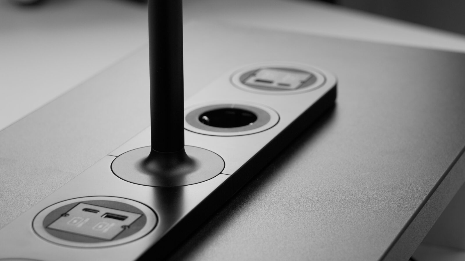 Born out of internal research identifying a lack of thoughtfully designed solutions for coworkers to plug into while working communally from one another across a large table or desk, Jones & Partners tapped into their experience in the contract furniture market and the electronic design realm. The result is an elegantly realized modular task lamp offering illumination, storage for stationery, wireless and USB port charging, and the option to add additional outlets in a single form factor.