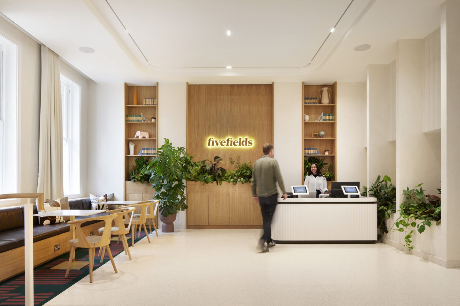 Centred on inclusivity, sustainability, and wellbeing, Fivefields is a new purpose-built workspace that brings together like-minded charities and social impact organisations working to improve the lives of children and young people. Designed by Barr Gazetas, the project was collaboratively developed by Grosvenor, The Westminster Foundation and x+why with significant artwork collaborations with Artiq.