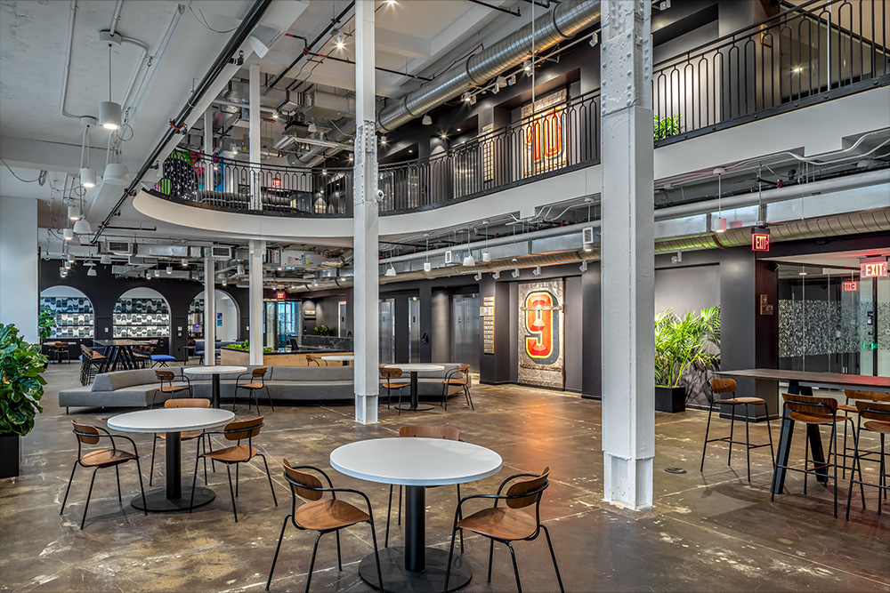 During BDG’s renovation the building was re-envisioned, and the core was renewed to reveal much of the original structure. Brick columns, bracings, cast iron fire exit stairways, windows, mosaic and concrete floors were left in place, as well as the building’s original sliding barn doors.
