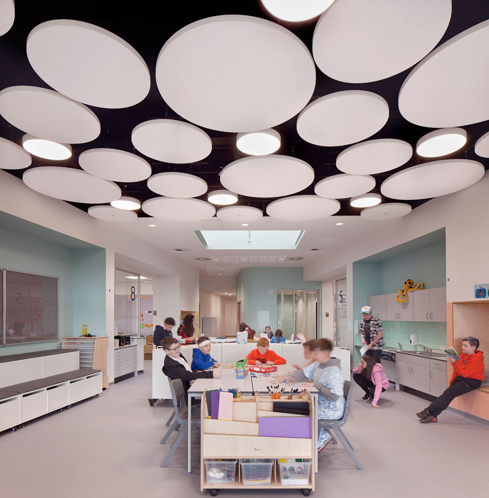 This is a building designed for the community, by the community. The vision for the campus was informed and developed through extensive consultation with the stakeholders. The design of internal spaces responds to the feedback received from pupils, staff, parents and the wider community. With sustainability a major part of the client brief, the use of photovoltaic panels to harness solar energy reduces the amount of energy consumed, while LED Lighting and lighting controls are used to reduce overall electrical energy consumption. The use of efficient fixtures and sensor activated taps also reduces overall water consumption, while Sustainable Urban Drainage systems such as wales and rain gardens are included in the soft landscape solutions.