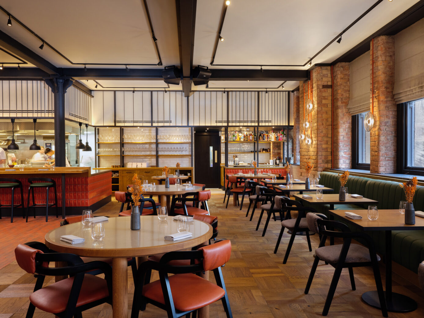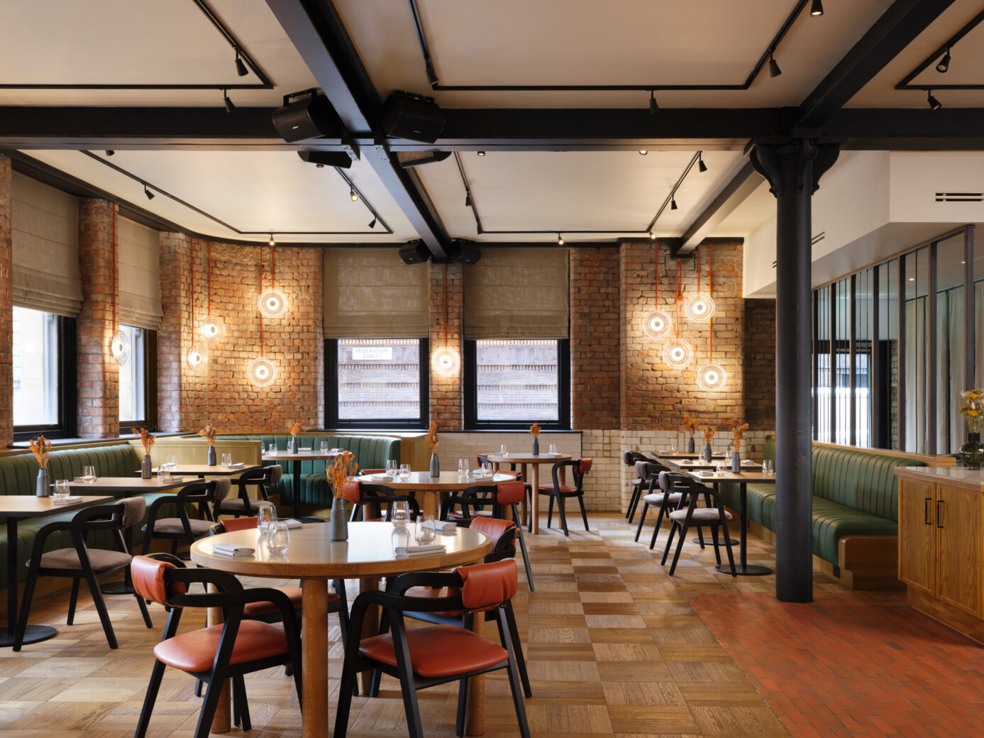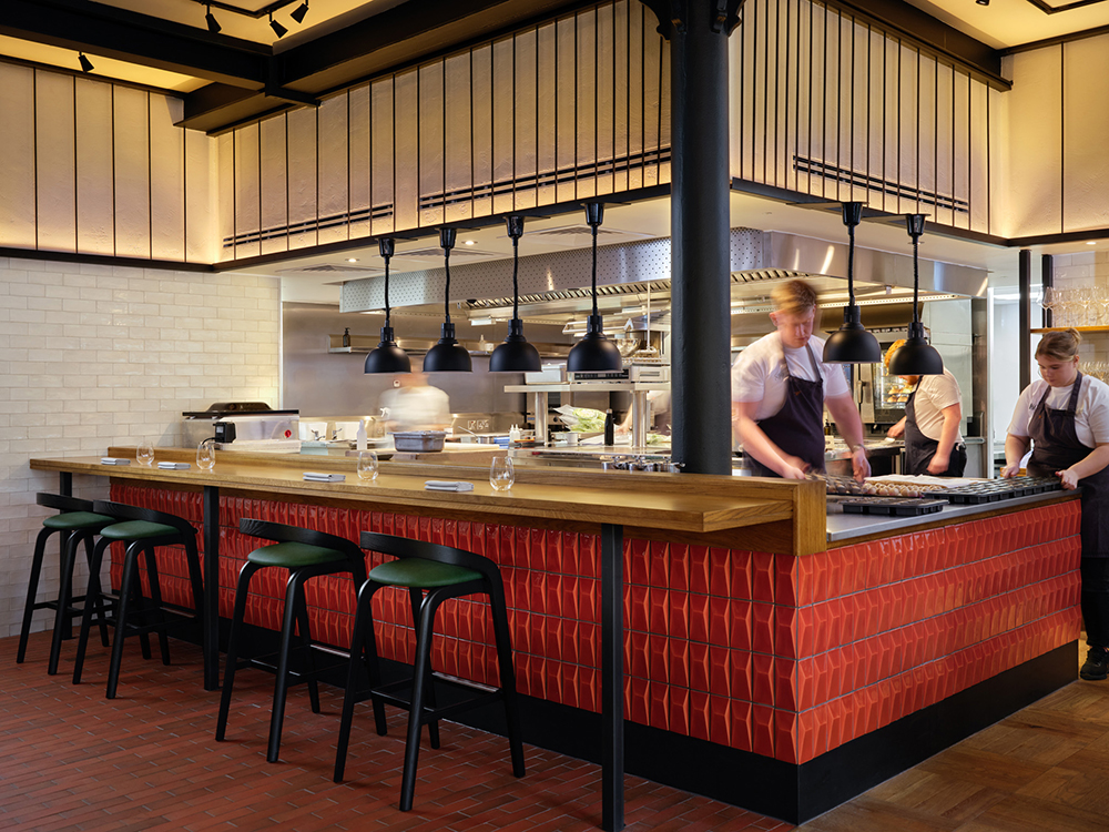 Led by Chef Tom Barnes and based in a historic former drapery within the Hanover Building in Manchester City Centre, Skof is a restaurant focused on skill, quality and elegant simplicity. Designed by London-based creative agency Blacksheep, the restaurant combines carefully restored original features with a refined, modern edge and a hint of Manchester influence. Intertwined with natural and urban elements, the materiality, colour and patterns link back to the city’s industrial heritage, the building’s Edwardian architecture and the broad selection of homegrown ingredients used throughout the menu, sourced from Simon Rogan’s Our Farm in the Lake District.