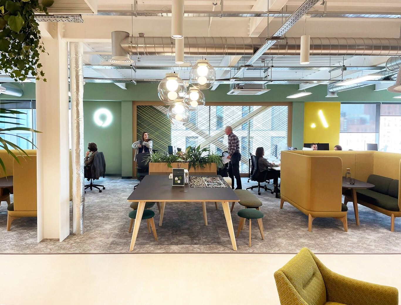 Located in the heart of Sheffield, Blokka created a fresh, vibrant, and open workspace for UK-based communications consultancy Counter Context. Working collaboratively with the client, Blokka reviewed and selected a new location for their Sheffield HQ; following an extensive engagement process with the team, the studio developed a workspace model to meet staff needs by analysing several potential spaces, creating test-fit layouts to help refine and inform the final selection. The resulting space is a unique workspace environment that provides a well-balanced mix of formal and informal workplace settings, with an aesthetic inspired by the art of communication and connectivity.