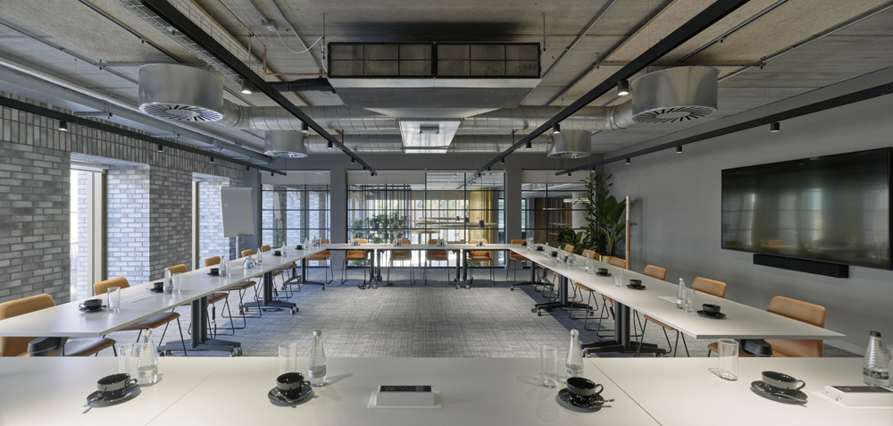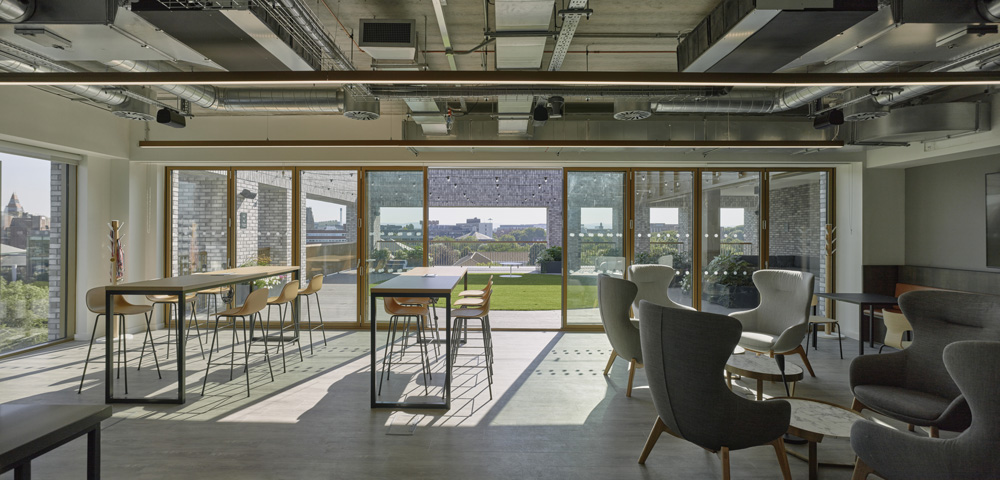 The building has 5 floors of accommodation and offers flexible, secure, leased or managed sustainable office spaces, plus makerspace workshop capability – all complemented with meeting rooms, an outdoor roof terrace, event space, and secure cycle hub.
