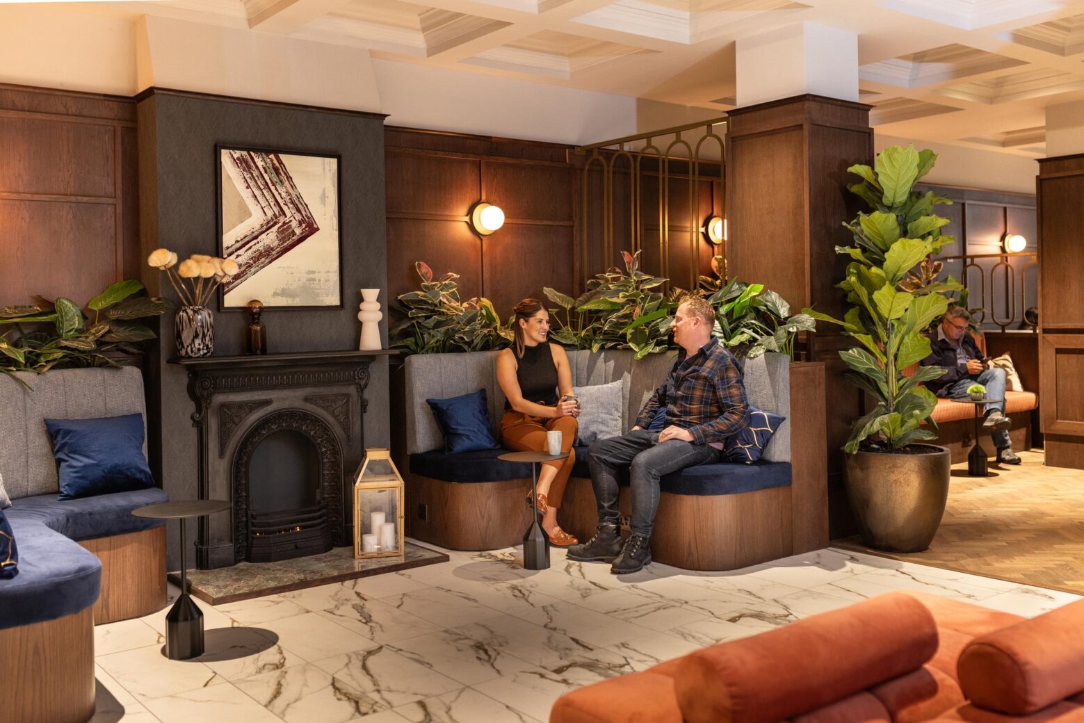 Bruntwood and AXI Studio’s goal was to transform the Grade 2* Listed 38-42 Mosley Street into an environment that defies the typical office aesthetic and atmosphere. Drawing inspiration from the building’s banking history, architecture, and purpose, the team sought to foster social interactions and inclusivity. Now rebranded as Bond, the scheme aims to provide a unique and distinctive space, where people feel inspired to visit and a new office normal’ is shaped. Grasping the opportunity to create a new restaurant space within the old banking hall, Bruntwood and AXI Studios unlocked the potential of the current vacant area, delivering a fluid and transitional environment between the arrival experience, restaurant and customer areas, while integrating the heritage architecture with a modern fit out.