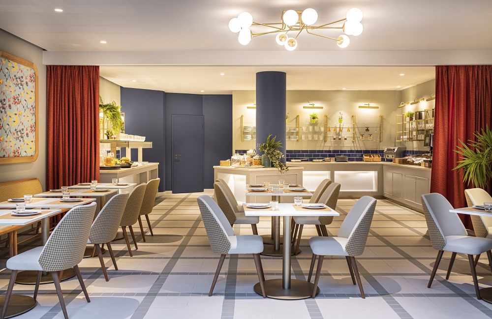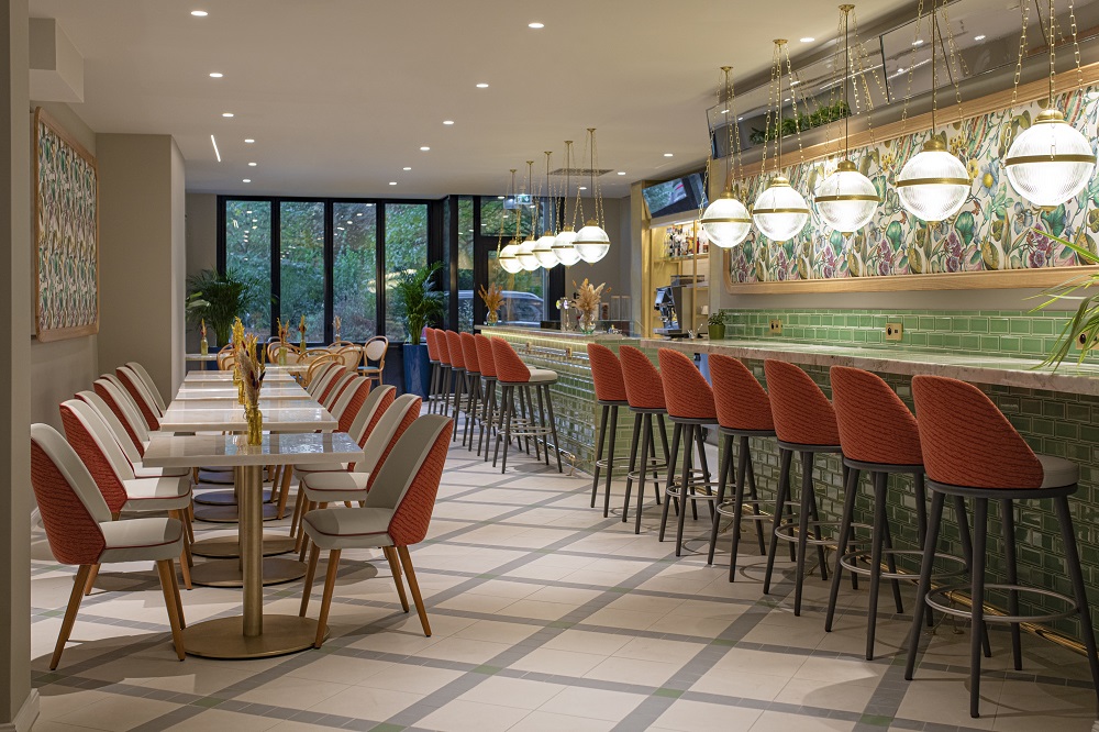 With localisation pivotal to Mercure’s brand, Buckley Gray Yeoman was inspired by Antwerp’s Academy of Fine Art having produced some of the world’s finest painters and fashion designers – giving licence to be bold in the use of pattern, colour and art. The studio opened the small arrival to provide a generous lobby, which features Antwerp Blue panelling, burgundy tiling and a stitched reception desk. In the F&B areas, classic European bistro references were deployed, such as glazed tiles, globe pendants and bentwood chairs. Atmospheric corridors contrast with light, fresh guestrooms with bespoke wallcoverings.