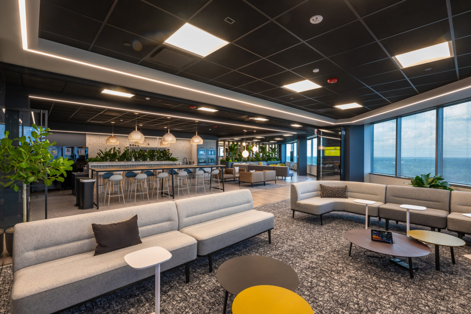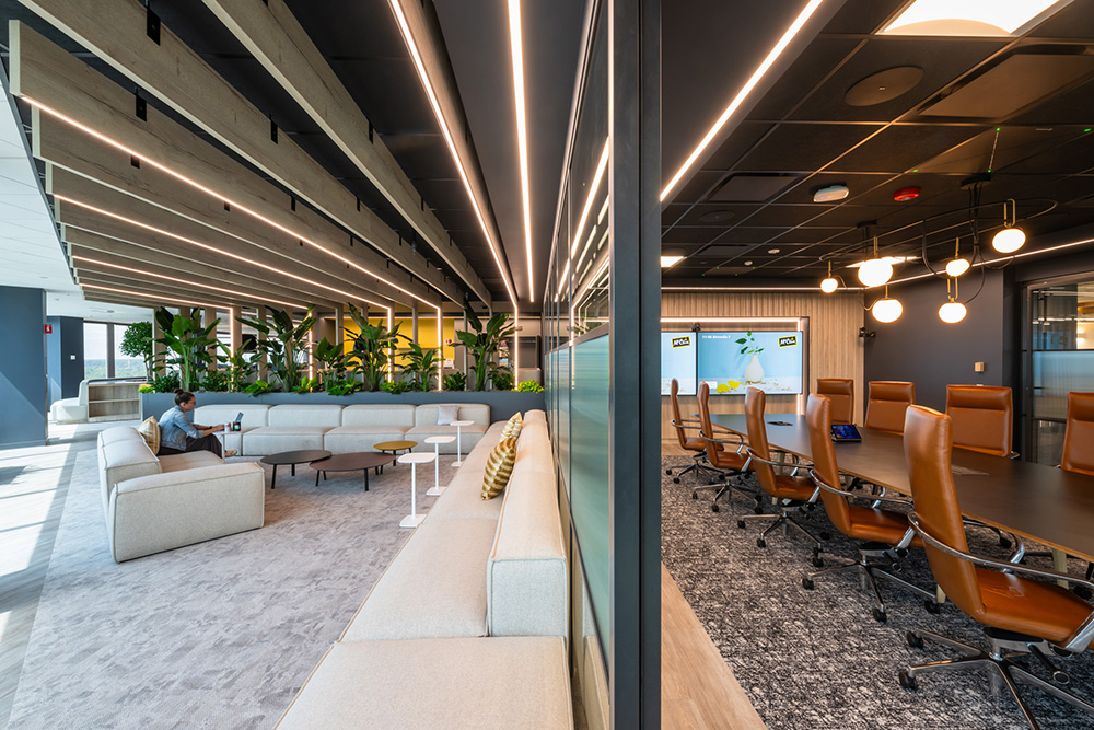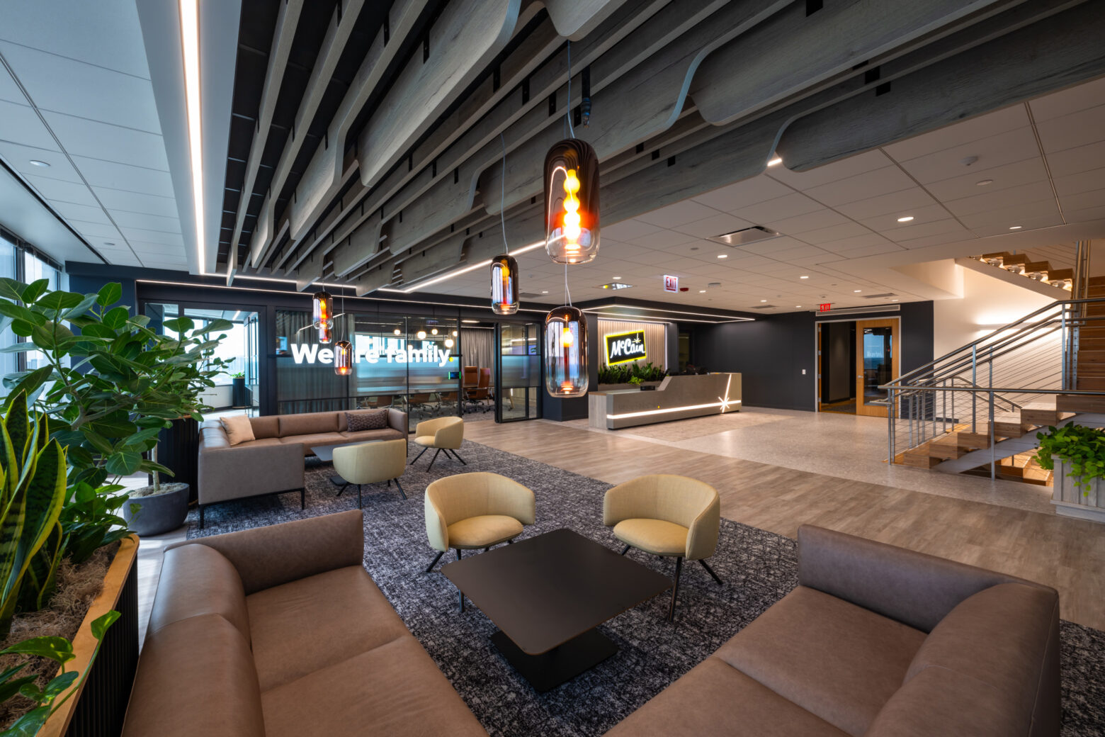 Chameleon Business Interiors provided workplace consultancy, interior design, fit-out and furnishing services for the complete redesign of McCain Foods USA’s American head office, located in Chicago. Moving into the iconic Oakbrook Tower, McCain inherited the previous incumbent’s fit-out and realised they needed a more tailored destination office that encouraged employees to travel back in. In-house amenities now include a full commercial kitchen, R&D facilities with a kitchen and sensory tasting rooms, a chef’s demonstration theatre, reconfigurable townhall auditorium and a dynamic mix of work settings to support employee wellbeing, hybrid working and improved collaboration.