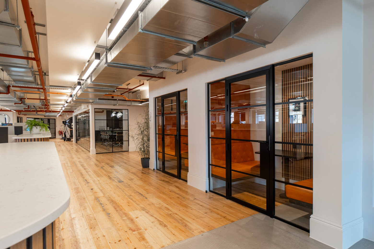 In pursuit of sustainability, Concorde BGW utilised all the existing timber flooring rather than re-specifying with new, as well as retaining areas of the existing brickwork and using LED lighting throughout. Bike racks also formed a key piece of this functional office space, encouraging the Gozney workforce to make green choices when it comes to their daily commute. A state-of-the-art extraction system was introduced to comply with health and safety standards and the regulations for a listed building, as well as navigating the complexities involved with installing a gas supply to the ovens themselves.