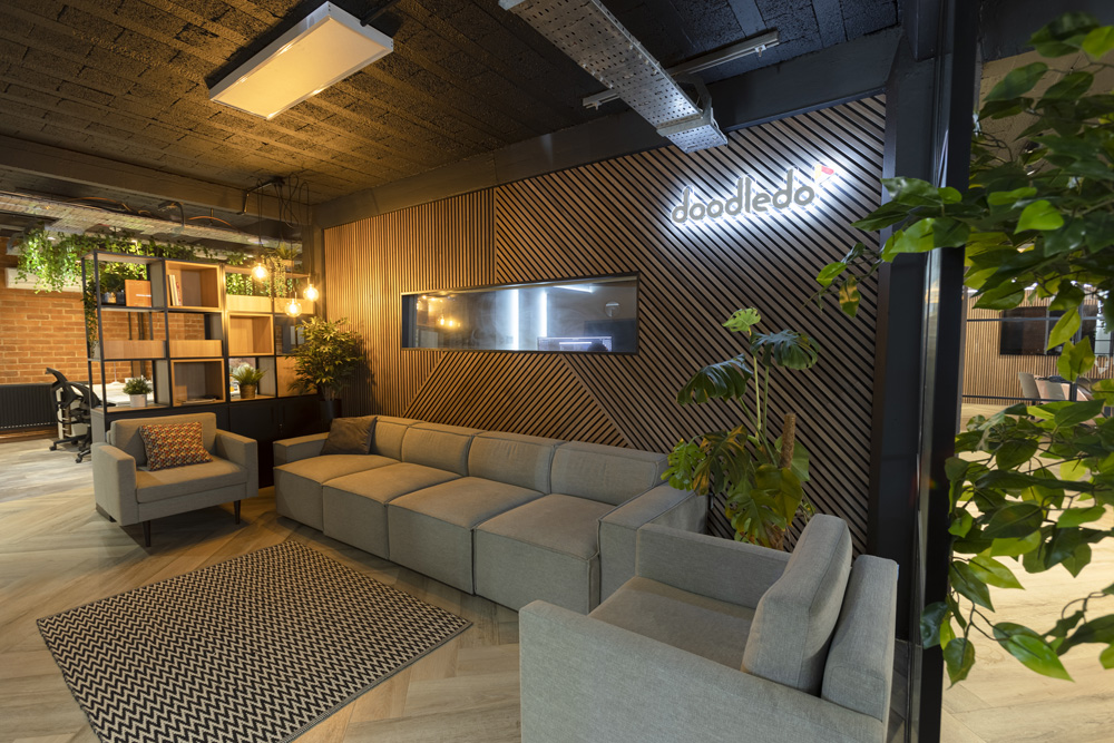 Eatock Design & Build (EDB) fulfilled all contractor, developer, engineer, and fit-out responsibilities to construct a bespoke suite of production and flexible working facilities for video production and animation company Doodledo. The newly acquired basement office space in Manchester’s Deansgate has been transformed into a welcoming, creative space which boasts one of Manchester’s most high-tech colour grading suites.