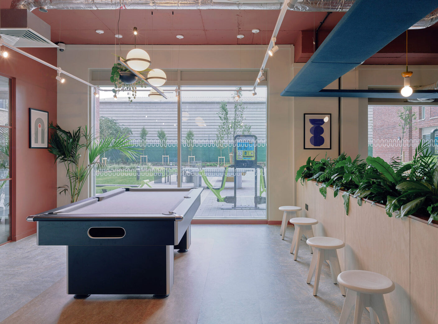Ekho Studio designed Enso, Colchester a bright, airy and light-filled student amenity space on the ground floor of the existing student accommodation. Incorporating thoughtfully designed communal spaces to encourage social interaction, the amenities needed to promote relaxation and wellbeing as well as offer a sense of balance to residents, with co-working spaces for both individual study and team collaboration sitting alongside lounge and seating areas, a gaming area and a fully equipped gym. The practice endeavoured to create a design that was environmentally low-impact, prioritising materials with strong recycled or recyclable credentials and low-energy manufacture and use.