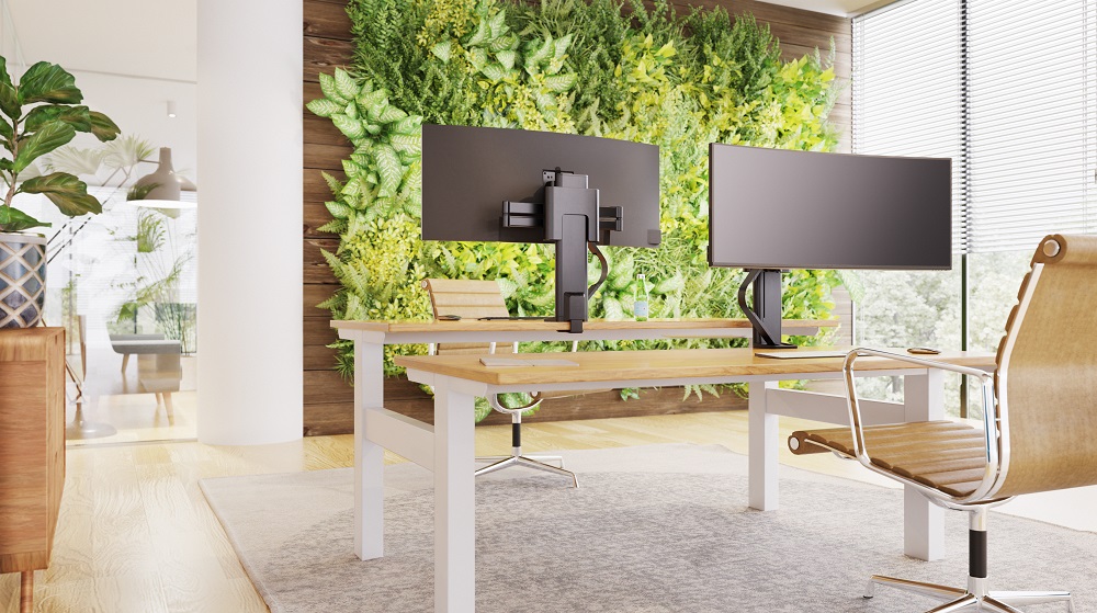 Unhindered monitor adjustment allows each user to embrace their next move with a natural home position that brings uniformity. The understated aesthetic complements the modern look of home and office environments, while keeping real human needs at the centre.