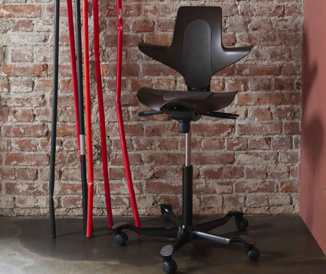 The HÅG Capisco Puls ‘Snow Plough Marker’ chair turns trash from the roadsides of Norway and turns it into treasure. A new collaboration between Flokk, the Norwegian Public Roads Commission (Statens Vegvesen) and the makers of the snowplough markers (Våler Vekst) has seen 7.5 tonnes of broken and unusable markers recycled into ergonomic task chairs for active sitting.
