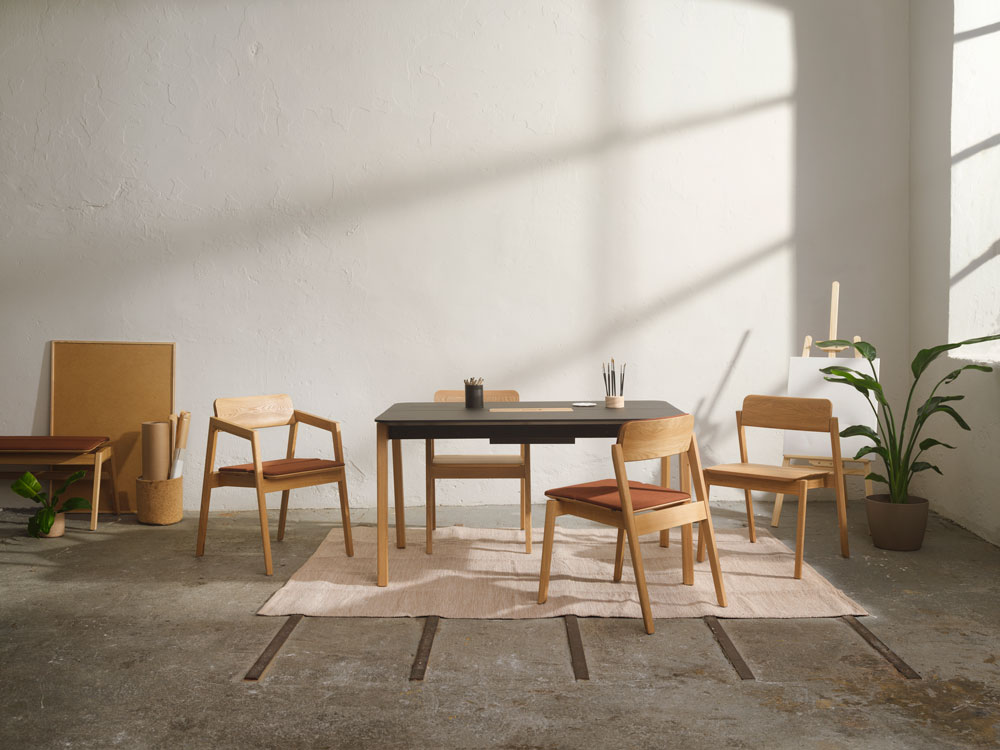 Now, the family has grown as families tend to do. Knekk is now a series of chairs, tables, benches, and an extended barstool solution, all in solid oak. The idea remains the same: enhance your creative meetings and social interactions. With Knekk as the main building block!
