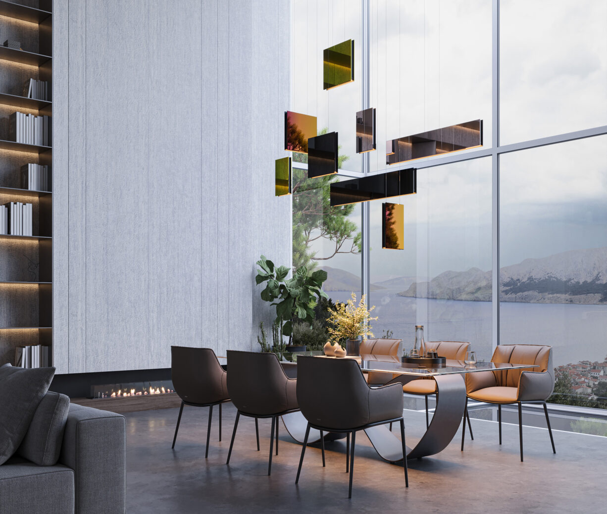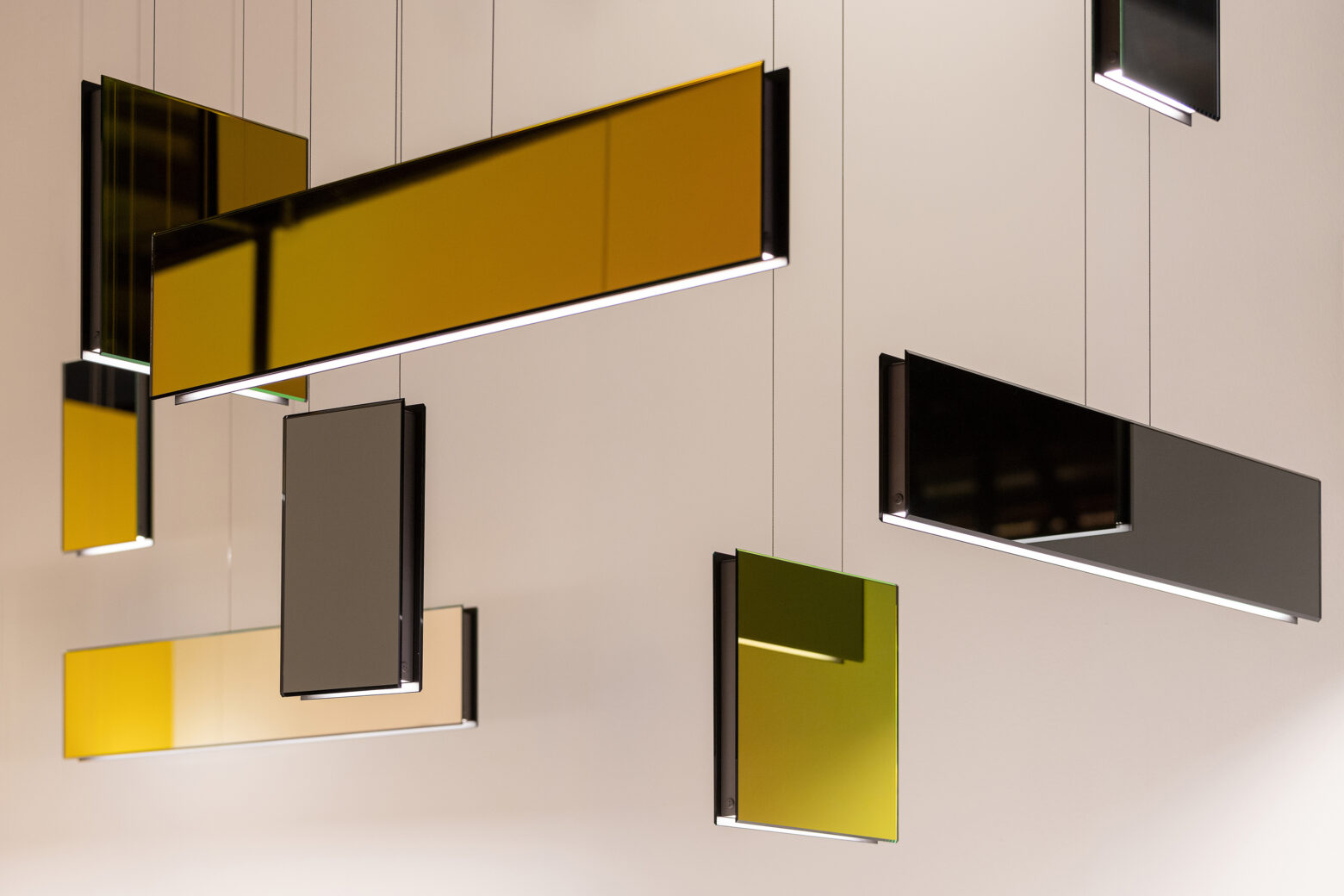 The MIRROR Suspension Collection is a completely unique approach in lighting – the blend of geometry with mirror surfaces in different finishes offers an art-like, sculptural design. This sculptural effect is emphasised when the light’s different formats are combined within a larger arrangement, suggestive of a modern chandelier. The mirror surfaces add a second space layer in the room or can also disappear, since the reflection ‘only’ shows the surrounding interior– blending in perfectly into any spatial design.