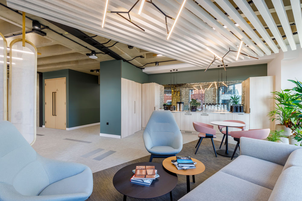 Habit Action embarked on a unique client journey with Canadian-based global investment firm, CDPQ, on their relocation project from St. James to Soho. This project designed by Habit Action turned a single 22,000 sq. ft floor plate into a vibrant workspace that not only caters for the needs of today, but for the long-term aspirations of the organisation. Initially the brief was very traditional in scope, but through a collaborative approach with the client, Habit Action were able to present ideas and creative solutions to transform their space from being just an office, to a beautiful people-centric hub for staff and clients alike. A key element of CDPQ’s offices globally is incorporating local flavours into the space while maintaining a corporate feel. For Habit Action this opened a pool or opportunity to create something truly stunning, combining the vibrancy of Soho with the dramatic architectural envelope of the building.