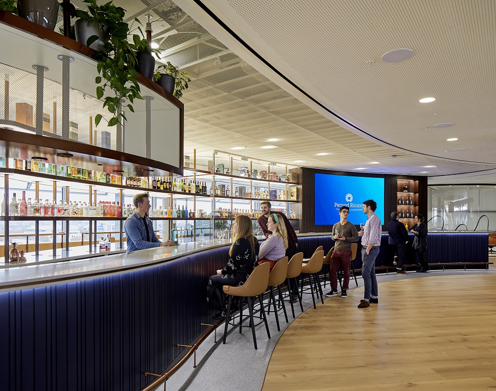 To encourage movement and ‘conviviality’ throughout the building, social hubs (including a bar serving Pernod Ricard products) have been strategically placed in combination with a connecting feature staircase. The workplace brings Pernod Ricard’s values to life and conveys them to their employees, partners, and visitors.