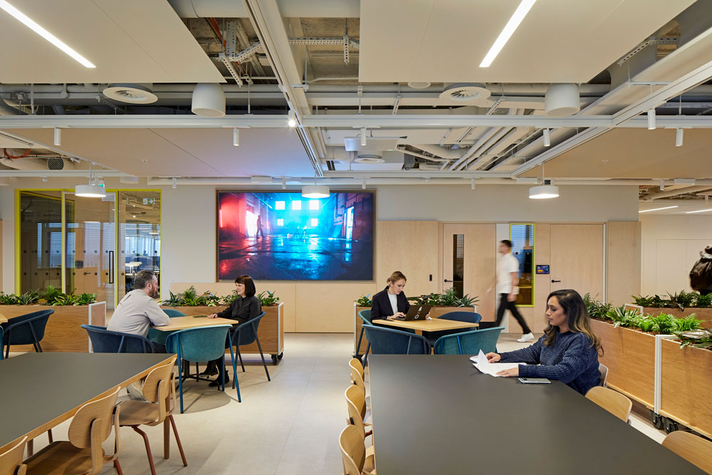 Cushman & Wakefield, Building Services Engineering, Tsunami Axis, Herman Miller OE1 range, Established and Sons Beam tables, Visplay flexible retail system, Vitra, JBH, Oscar Acoustics, Abstracta, Zandur, Interface, Shaw carpets, Apollo glass worktops, 3 Form Flek recycled resin, Solus Terracotta tiles, Radii Partitioning