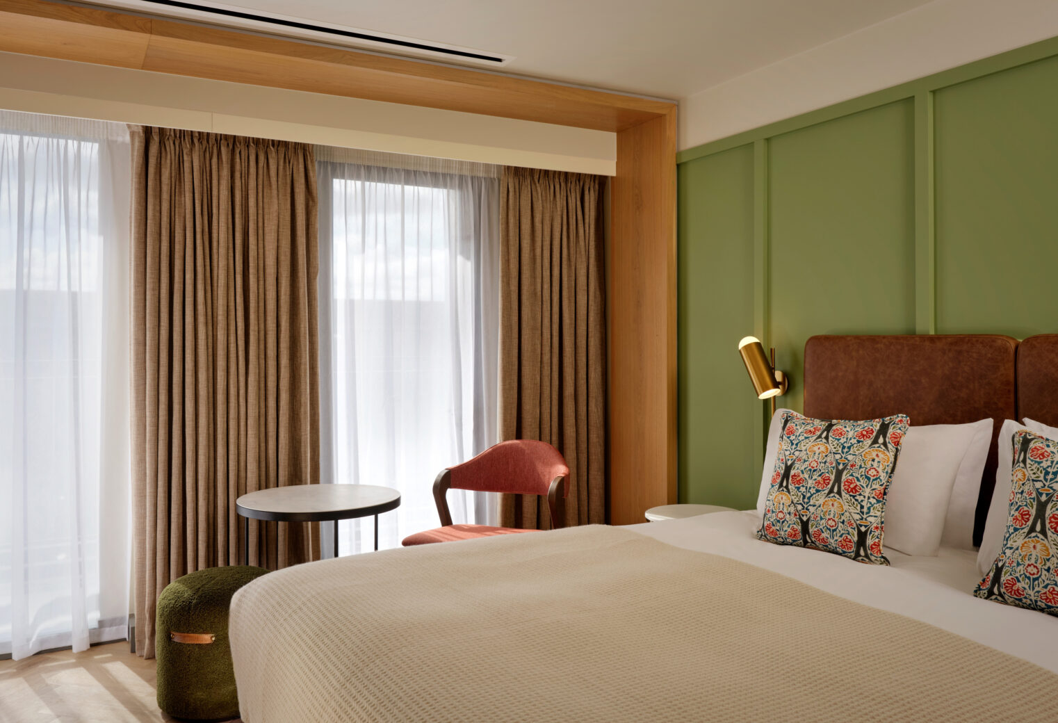 The Reach at Piccadilly is a striking addition to Manchester’s cityscape, combining the energy of its central location with the tranquility of the adjacent Rochdale Canal. Designed by ICA, this ten-story boutique hotel houses 215 guest rooms and luxury suites, complemented by a series of thoughtfully curated public spaces. Inspired by the ingenuity of Manchester’s canal pioneers, the hotel’s design bridges the city’s industrial heritage with its contemporary entrepreneurial spirit. The interiors are a modern homage to Canal side living, enriched by the craftsmanship of narrowboats. Tactile, natural materials – coal, cotton, timber, wool, limestone, and salt – honour the goods that once traversed the Pennines, linking the region’s past to the present with a timeless aesthetic.