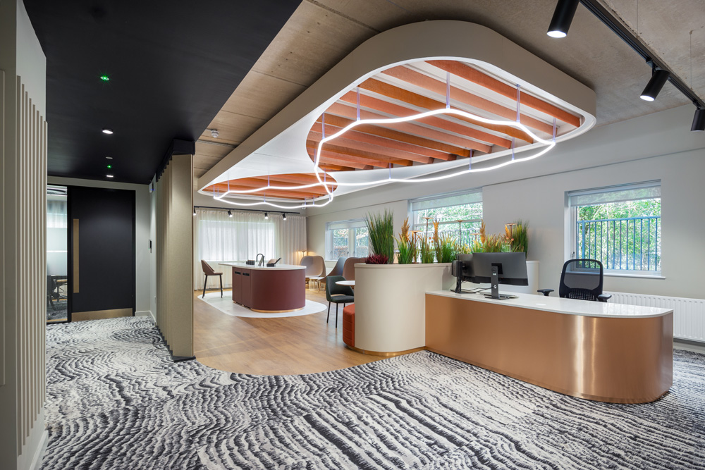 Lancashire’s design took inspiration from its location, with hidden nods to Preston’s heritage. Forms within the office were derived from the surrounding network’s tram road and railway links, and further symbolise the company’s wider need for connection.