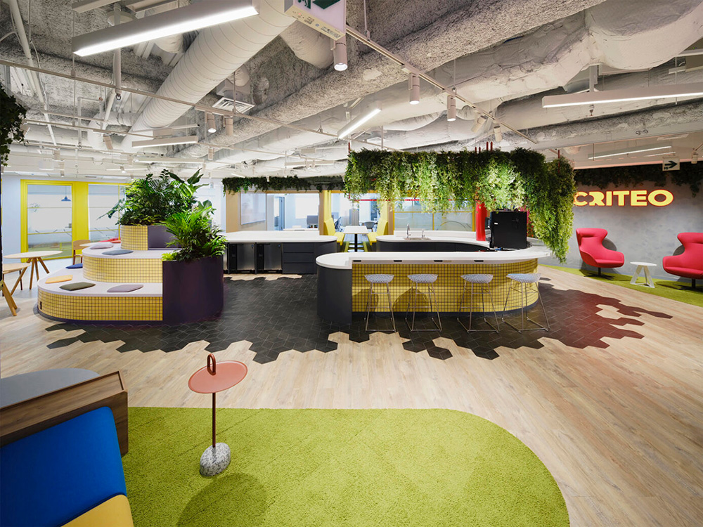 The transformation of the AdTech giant Criteo’s Paris HQ was a highlight of their Global Transformation Project, designed by K2 Space. Criteo’s commitment to hybrid working post-pandemic required an innovative approach to the functionality of the workplace whilst also recognising the value of the aesthetic. 32 Rue Blanche, a landmark building in the historic 9th arrondissement, has been the home of Criteo since its inception. In responding to Criteo’s downsizing, close collaboration with the workforce was required to design a supportive workplace for new ways of working and to ensure it remained distinctly Parisian, yet unmistakably Criteo. The workplace project is characterised by bright, functional spaces, utilising innovative design, bold furniture choices and sustainable methodologies and materials, which coincided with workforce requisites that the new space should be ecological as well as spatially economical.