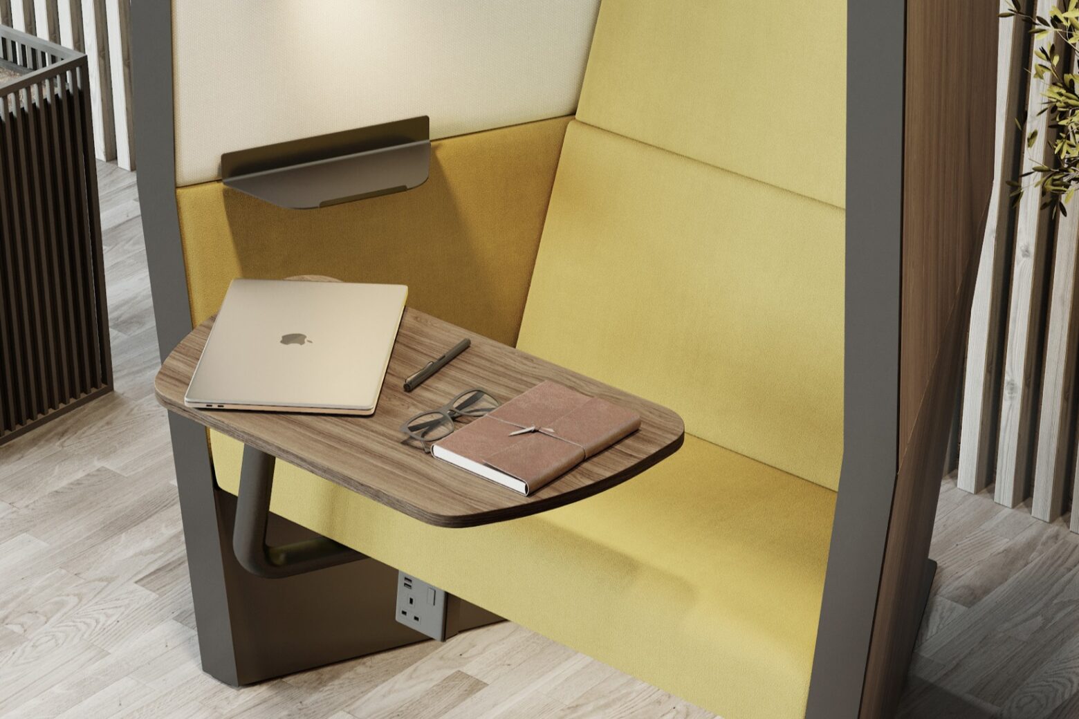 Kabin goes beyond the traditional acoustic booth to be an acoustically sound, ergonomically designed personal space, designed for extended periods of use with comfortable and sophisticated interiors, as well as in-built AV geared toward mood enhancement and relaxation. Kabin is developed in-line with humancentric design principles, incorporating research on what humans need to do our best work, and how the design of a space can support better decision making, increased focus and elevated productivity.