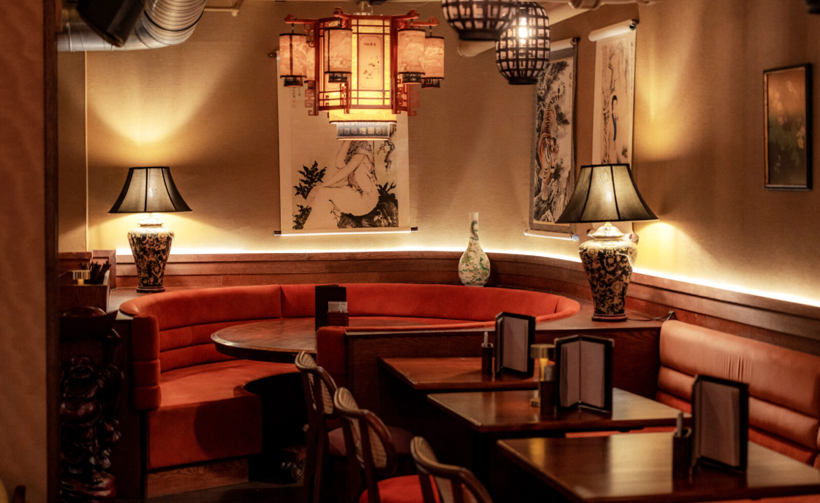 KAI Interiors were tasked to design a main bar area with separate dining and lounge spaces, along with an outdoor courtyard that narrates the story of Lucy Wong. By restoring and repurposing the vast majority of decorative elements within the space, KAI Interiors gave the site a new lease of life. The use of natural materials like grass cloth have been used as a canvas for custom artwork and specified fabrics were carefully selected from trusted suppliers who promote sustainability.