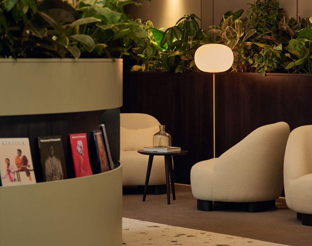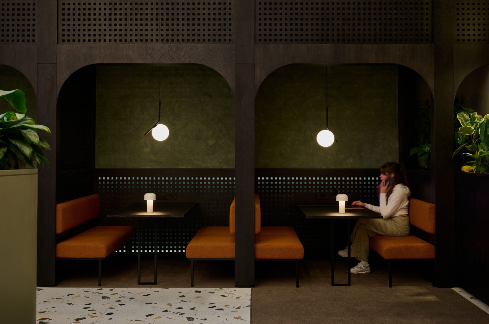 The repositioning of 5 St Paul’s as a tenant focused workplace was at the heart redeveloping this well-known Liverpool building. The introduction of new client focused spaces, end of journey facilities, a reception meeting space, roof terrace and well-being area all add into the work life balance concept created by ‘kin, keeping wellbeing at the heart of the concept. Rich velvet textiles and timbers feature throughout, set against the glass and steel of the base built, from the small working enclaves to wider, more open social spaces.