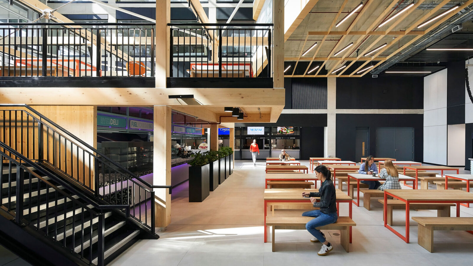 The x+why spaces have capacity for up to 1,200 members offering space for single occupants all the way through to Enterprise Suites for up to 90. This supports a multifaceted community of change makers in a sustainably designed workspace to enhance wellbeing and collaboration. Alongside social spaces, bookable meeting rooms, mission rooms, and phone booths, users have access to an expansive food-market, auditorium, bank, retail spaces, community hall, rooftop restaurant, and health suite.