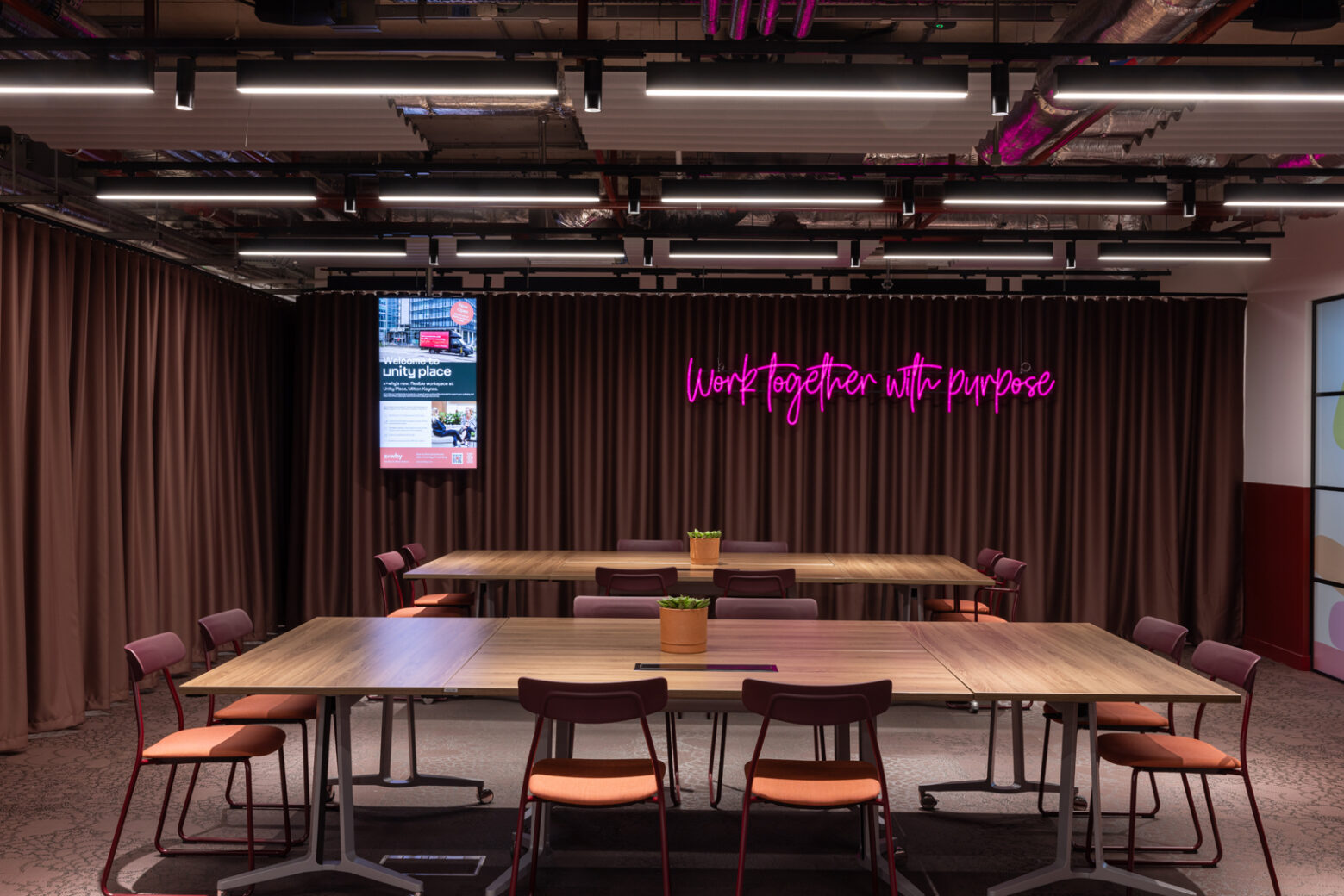 In the heart of the Oxford to Cambridge Arc, Milton Keynes, contemporary and inspiring workspaces have been created within a new landmark building, Unity Place – home to Santander UK who occupy levels 4 –7. Designed by LOM architecture and design and managed by x+why, a 6,000 sqm co-working floor on Level 2 welcomes digital start-ups and creatives, together with specialised shared learning spaces for MK University students – cultivating a dynamic and inspirational mix of users.
