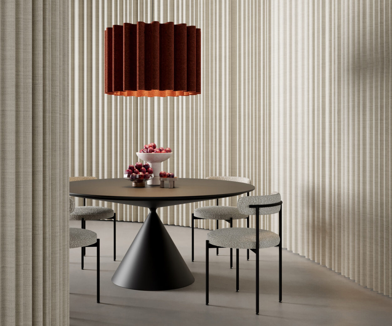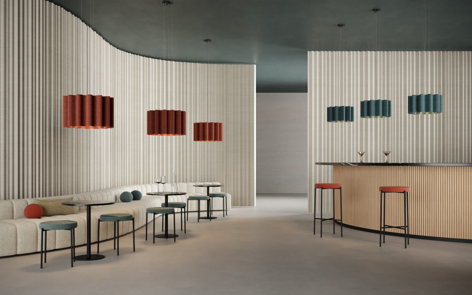 Kurtain by Luxxbox redefines acoustic lighting with its unique blend of visual appeal and sound absorption. Inspired by the graceful movement of fabric, this acoustic pendant not only creates a captivating visual statement but also effectively absorbs ambient noise, fostering tranquillity in bustling environments. Crafted with luxurious Camira Blazer wool, Kurtain features a soft, flowing wave effect that is both aesthetically pleasing and functional. The high-performance, dimmable LED light source provides excellent illumination, making it ideal for shared workspaces and open-office environments.