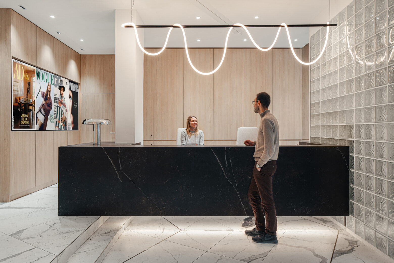 By selecting a classic Haussmann building and incorporating original features, M Moser minimised environmental impact while preserving the cultural heritage of the space, and also curated experiential elements such as the gallery hallway and fashion closet. One of the project’s most innovative aspects is on the ground floor, visible from street level, and serves as a creative showcase, drawing visitors into the space. Inside, carefully curated displays of iconic photography in ‘Le vestibule’ make a powerful first impression, setting the stage for a dynamic and engaging workplace experience. Amenities like the central video suite and ‘le dressing’ offer immersive opportunities for collaboration and interaction, further enhancing the office’s functionality and appeal.