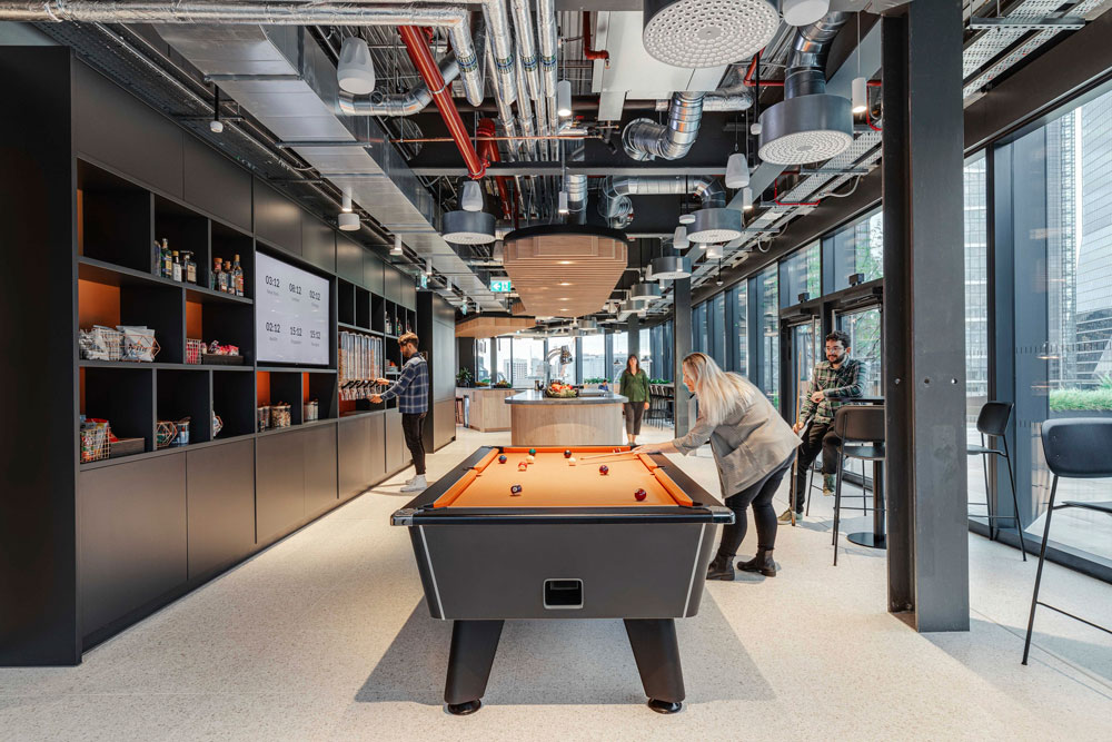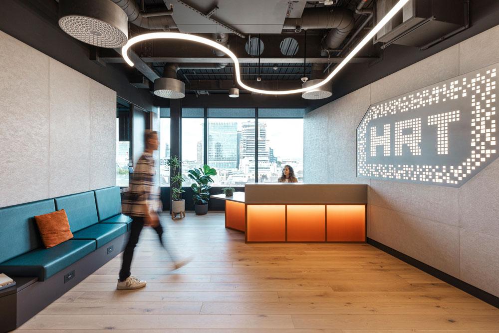 Hudson River Trading (HRT), is a quantitative trading firm with over 900 employees across six countries. They partnered with M Moser Associates to create an office in London that supports collaborative work while also reflecting HRT’s culture and identity. The office design and build solution reimagines the traditional trading floor. Specifically, the ‘Tink Tank’, is a dedicated setting for problem-solving and ideating together, outside the banks of desks. The space also includes social areas, such as a café and lounge, for staff to connect and unwind. The design incorporates bespoke algorithm-inspired artwork and uses the angles of HRT’s logo to juxtapose the curves of the building. The office is located in the BREEAM ‘Outstanding’ net-zero carbon building, 100 Liverpool Street. The project team prioritised sustainability by designing all MEP engineering services from scratch, monitoring energy usage, and utilising virtual space capture technology to reduce emissions during construction.