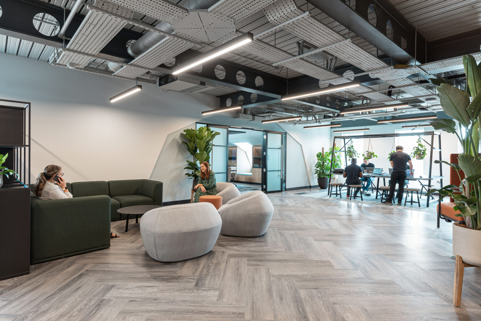 Embracing hybrid working, each team enjoys personalised pods within an open-plan layout, equipped with hot desks, meeting rooms, and collaboration spaces. The ground floor features a central bar hub, promoting spontaneous interactions and innovation. With a focus on multifunctionality and workplace well-being, the design incorporates sustainable elements, including a rooftop terrace and herb gardens, while maintaining an industrial-chic aesthetic reflective of the company’s ethos. This holistic approach cultivates a harmonious blend of productivity, comfort, and inclusivity, embodying JTI’s commitment to continuous improvement and creating a vibrant workplace community.