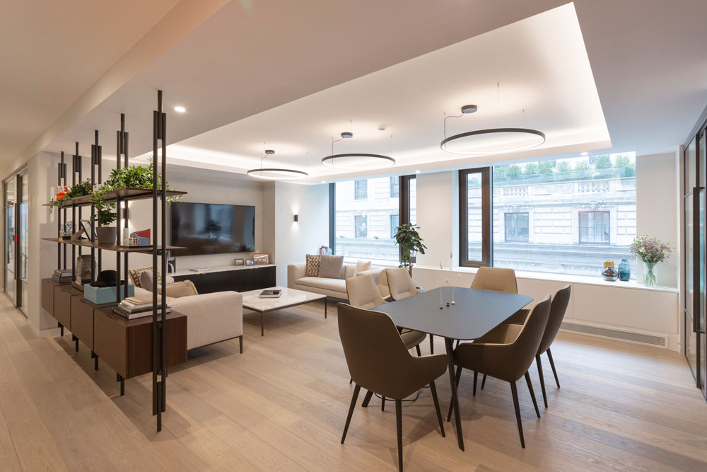 Renovation of historical building in prominent location of London Mayfair revealed numerous of design opportunities and challenges. MF Design respected the building structure and its irregular grid; adding layers of services and negotiating low ceiling heights before coming up with pragmatic, rational yet unique design.