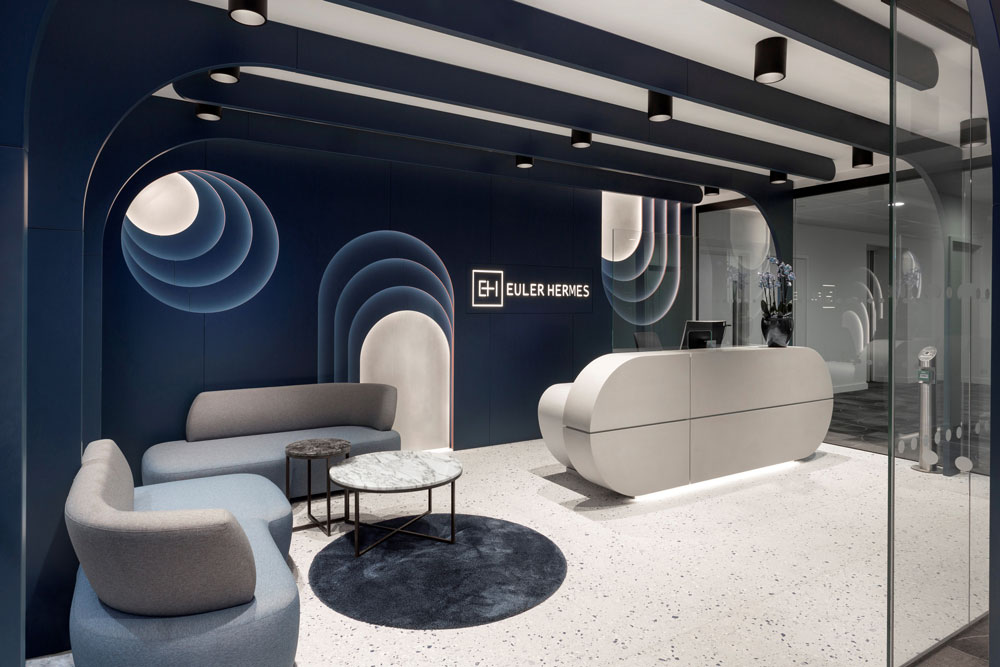 MF Design Studio’s concept “A journey to the future” was inspired by Euler’s values “Be Bold” and “Confidence in Tomorrow” – through the design the team identified a design language where the shapes meet with bold colours to create a memorable experience. The reception forms the gateway to the future experience where the bold shapes, colours and the beautiful use of lighting combine to create a special environment that greets you the minute you enter the space. The front of house represents Euler’s brand and identity in the form of monochromatic bold spaces; where each space has its personality.