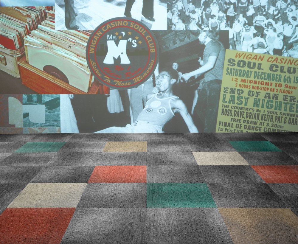 In this imaginative carpet tile collection, Milliken designers pay homage to the Northern Soul movement – a point of pride to the local community and currently enjoying a popular revival.