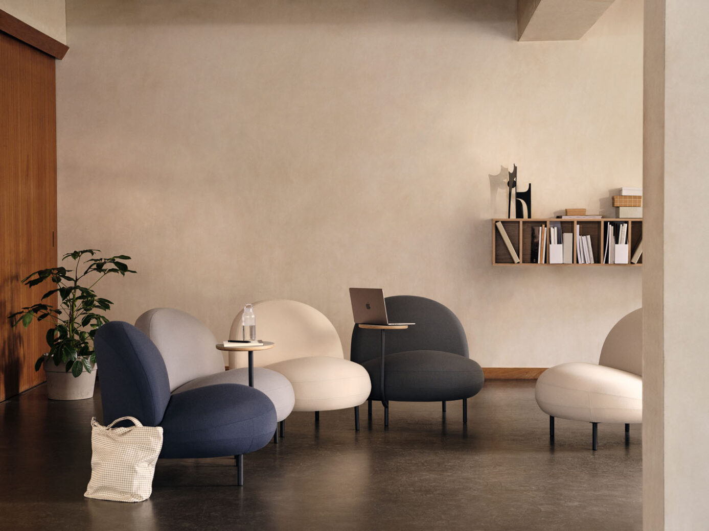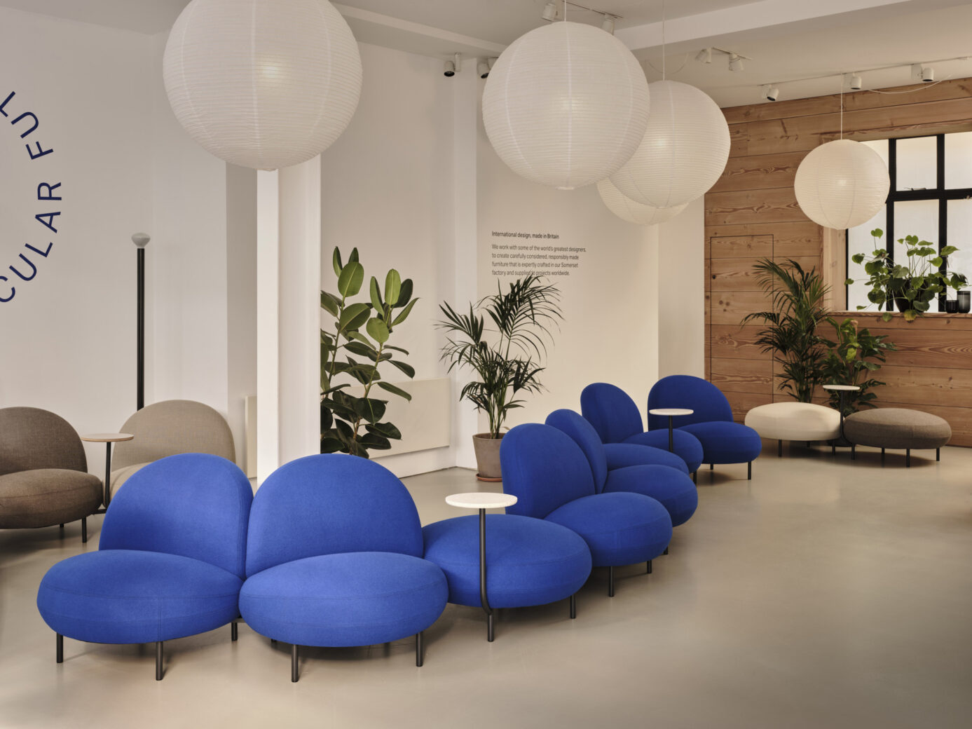 Maluma is a totally flexible seating system suitable for workplace, hospitality and education. The soft, circular form, with inset legs and supportive backrest, is what makes Maluma especially user friendly. The system can be configured using single seats or ottomans or linking together long strings of seating that can be adjusted to create the perfect shape, working around architectural barriers to create organic, user-friendly shapes that aid proprioception and enable Maluma to be kept in use if a floorplan changes. Select tables by Modus can be integrated to make Maluma an ideal seat for nomadic working, offering an inviting addition to the agile workspace.