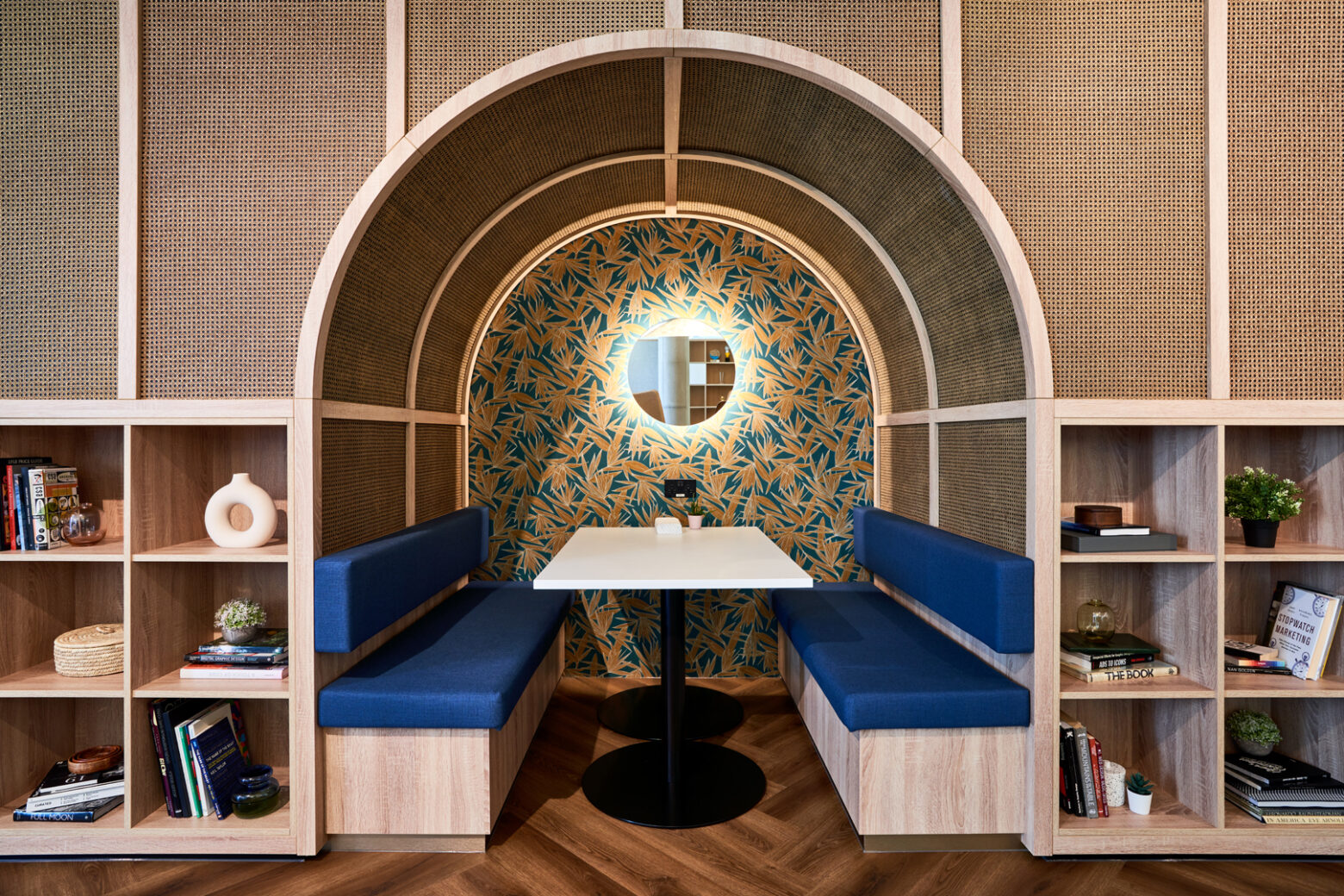 Modus Workspace’s Sapient Project is a triumph of sustainable luxury in office design. As a certified B Corporation, Modus wove eco-consciousness into every phase, with sister company Platfform enhancing the design with recycled furniture. This ethos extended to the refurbishment of additional floors acquired by Sapient, where creativity flourished through the reclamation of materials, aligning with Modus’ waste-reduction mantra. Central to the project was the active participation of Sapient’s team, ensuring an unrestricted design narrative across new collaborative spaces, including a serene library and lively barista bar.