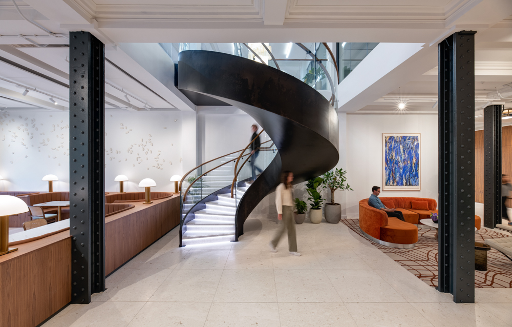 Morgan Lovell, in collaboration with Elizabeth Stuart and HTA Design, delivered Greystar’s new European headquarters within heritage building The Gilbert, thoughtfully blending global brand consistency with local character. The workspace was designed to attract and retain top talent through a refined, distinct environment, with key features including a grand reception with a crystal chandelier and feature staircase, meeting rooms, breakout areas, and open-plan, acoustically treated workspaces. The design preserves and showcases The Gilbert’s original architecture, including high ceilings and historic windows, creating a harmonious balance of functionality, elegance, and heritage.