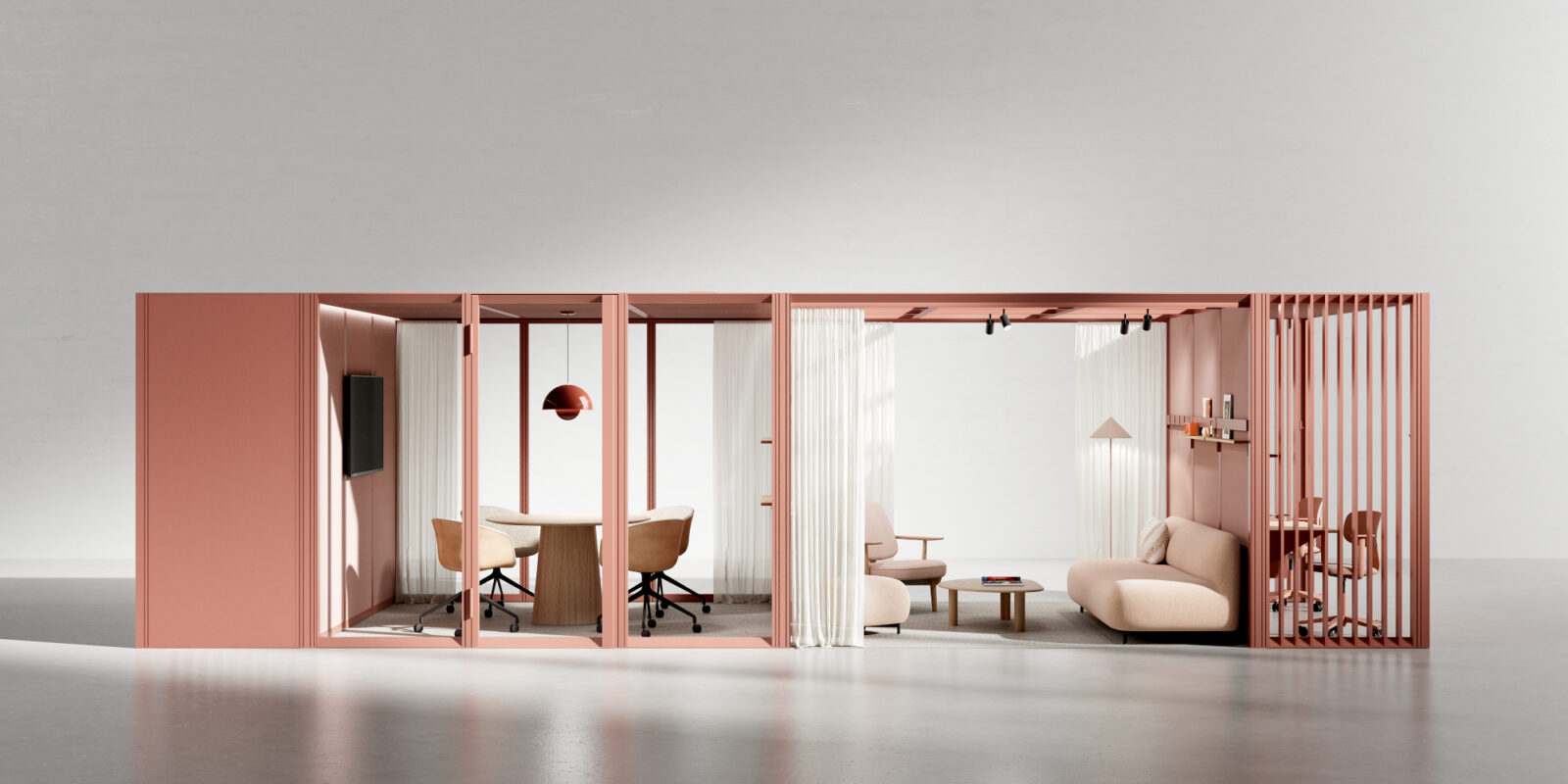 OmniRoom is a complex, modular room-in-room system for building flexible and comfortable office spaces to suit different sizes and purposes.