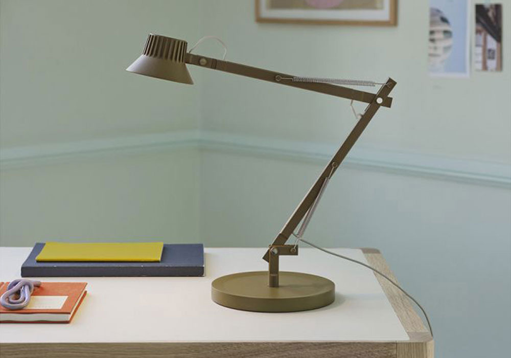 The Dedicate Table Lamp is a contemporary take on the classic architect lamp, where design meets functionality seamlessly. Meticulously engineered, the lamp offers integrated cooling ribs, quality lighting, dimming, and an auto-turn-off feature while guaranteeing steadiness through its flexible arms. Available in various sizes, the Dedicate Table Lamp caters to diverse lighting needs and design preferences, providing a versatile and personalised lighting solution. The dedicate is not just one lamp but a whole system. Built from the same elements, it comes in three models with different functions and lengths combined with the option of four different bases: a table base, a wall mount, a clamp and a pin. Dedicate comes in Brown Green and Black.
