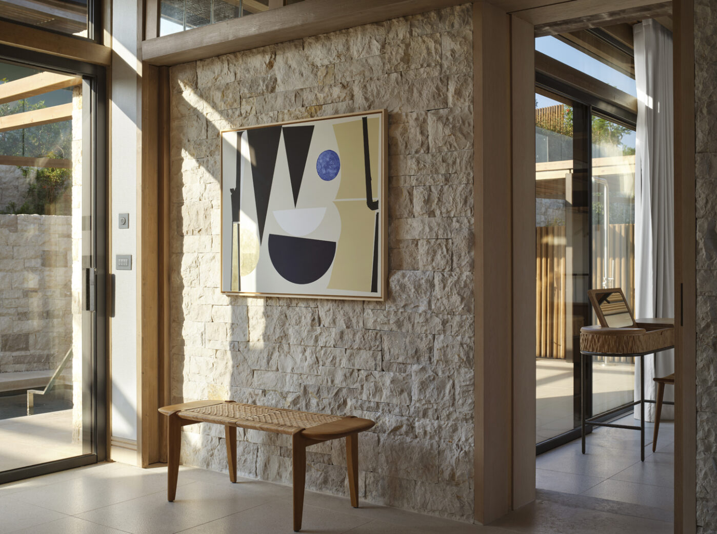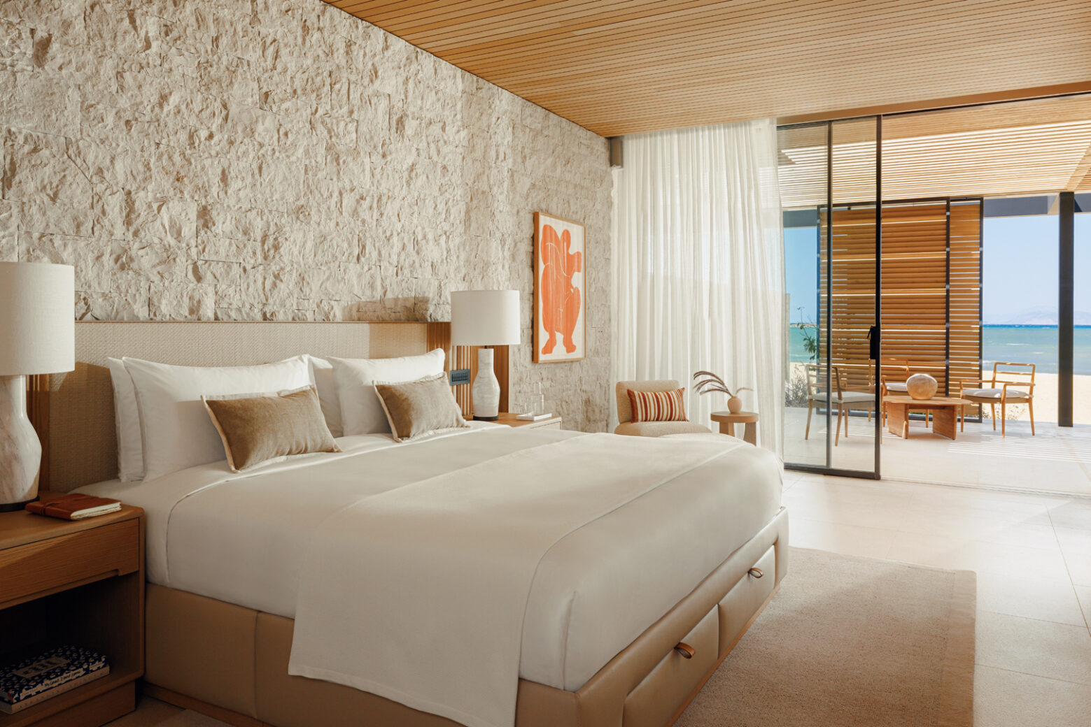 Set within a 21-hectare reserve on a 2.2-kilometre exclusive beachfront in Glyfada, the ultra-luxury resort of One&Only Aesthesis occupies the original site of the iconic Asteria beach club, dating back to the 1950s. The interior concept seamlessly weaves six elemental forces of nature throughout, captivating with the dance of fire, the essence of water, the earthy tones of wood and stone, the gentle presence of air, hand-forged metal, and the mesmerising light of Greece. Drawing inspiration from mid-century design, the lobby’s architecture pays homage to the cosmopolitan essence of the Riviera, featuring high ceilings, woven leather accents, and a harmonious blend of muted tones.