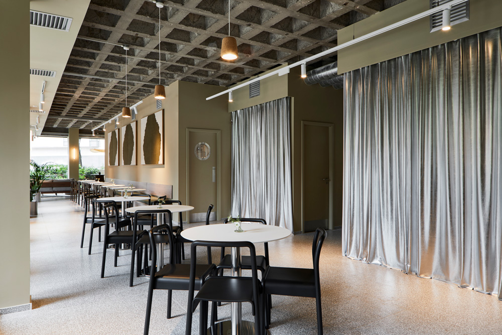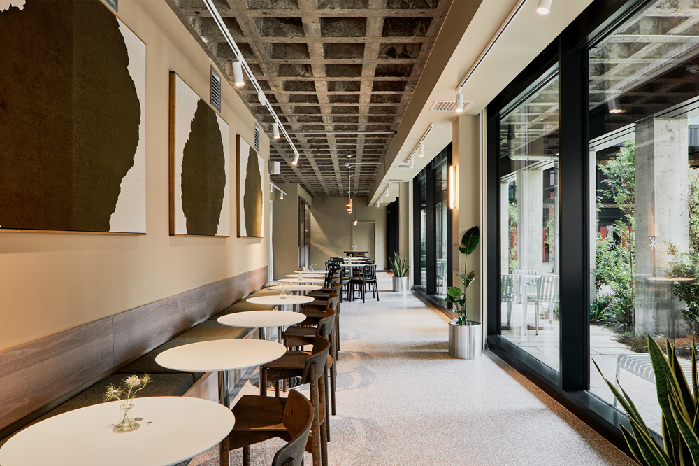 Expanding to a second location in Manchester, Pollen’s Kampus site is home to the patisserie and large cafe area which flows out into the Kampus public gardens. Raw unrefined materials, repetition, layered materials, grained texture, clean industrial lines, linens, wholemeal tones and darker ‘caramelised crust’ accents pay homage to the baking process.
