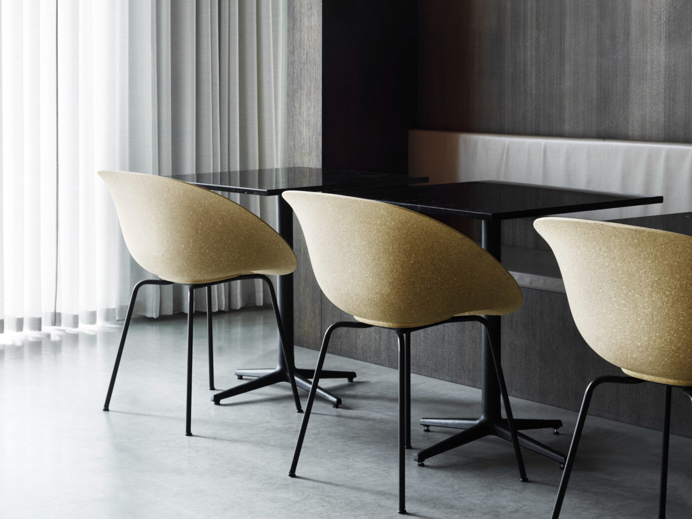 From hospitality and educational institutions to libraries and F&B spaces, Normann Copenhagen’s Mat Chair is suitable for a variation of settings. Encompassing a wide selection of chair types, including dining, working and lounging, the line ..two different heights, which can be fully or partially upholstered dependent on user needs,