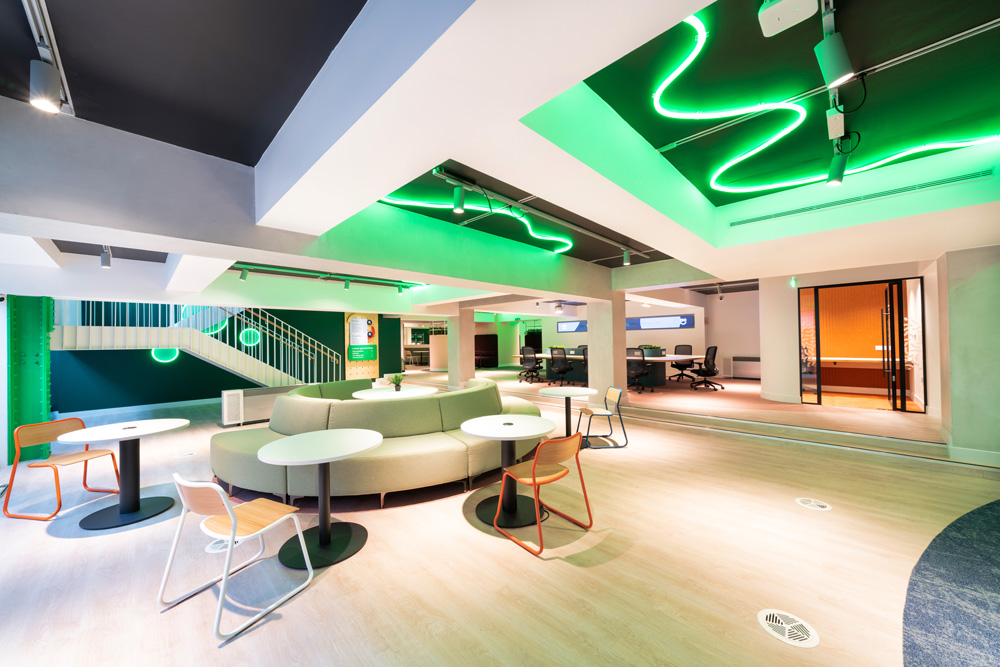 OBI has designed the AO London Creative Hub to be an immersive brand experience that utilises AO’s key branding elements, such as by contrasting colours and oversized shapes to create a bold yet sophisticated outcome.