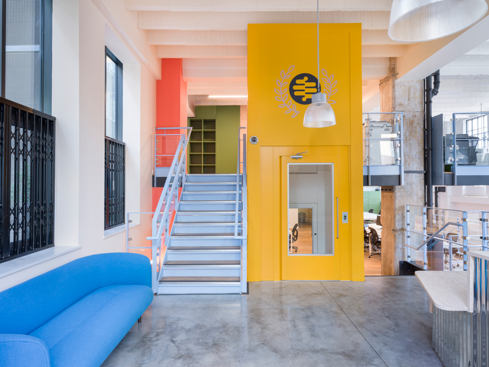 The Academy’s workspace fit-out uses natural materials to create a healthy, collaborative environment. Located in a triple-height former factory, the design reflects The Academy’s identity as a workshop for ideas. Office S&M prioritised sustainability, incorporating modular timber partitions, recycled aluminium and acoustic insulation made from recycled fishing nets. A bold colour palette highlights the 1930s factory’s architectural features, while collaborative elements like a chalkboard workshop and cork-clad partitions foster creativity. The design balances sustainability, wellbeing and adaptability, ensuring the space evolves with the growing team.